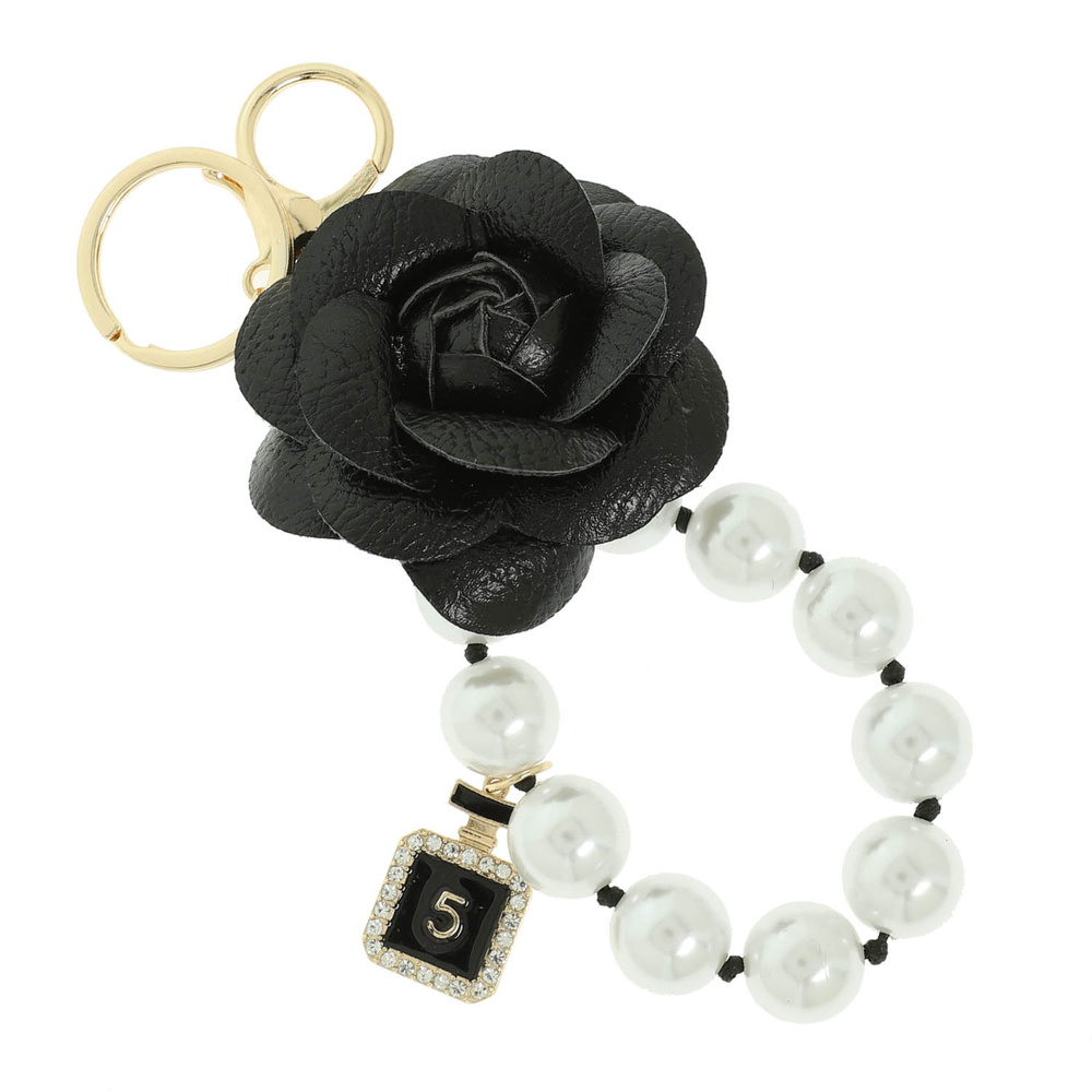 FLORAL BLOOM THEME BAG CHARM KEYCHAIN WITH FLOWER PEARL BEAD WRISTLET AND TRINKETS