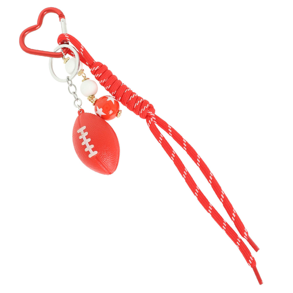 FOOTBALL THEME BAG CHARM AND WRISTLET KEYCHAIN WITH LOOPED ROPE DESIGN