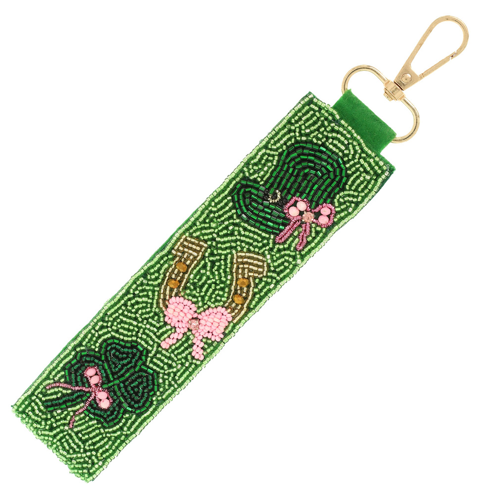 ST PATRICKS THEME SEED BEAD WRISTLET KEYCHAIN WITH CRYSTAL ACCENTS