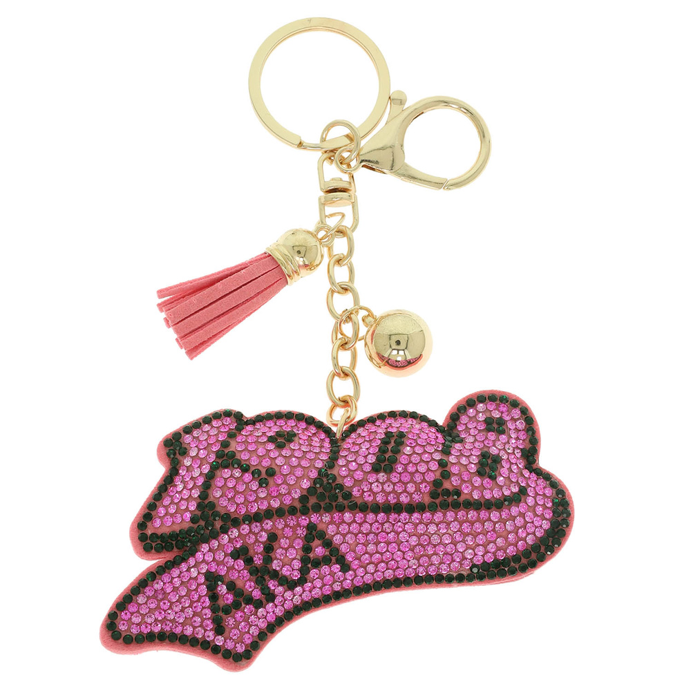 1908 ALPHA KAPPA ALPHA SORORITY KEYCHAIN WITH RHINESTONE ACCENTS