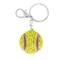 CRYSTAL RHINESTONE PAVE SPORTS YELLOW SOFTBALL KEYCHAIN WITH DUAL SPLIT RING AND LOBSTER CLAW CLASP