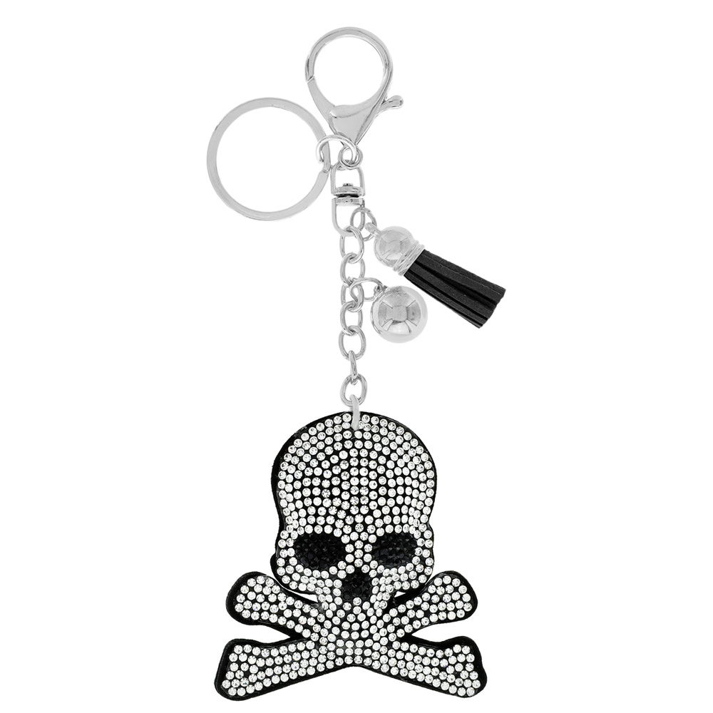 SKULL AND CROSSBONES RHINESTONE KEYCHAIN WITH TASSEL