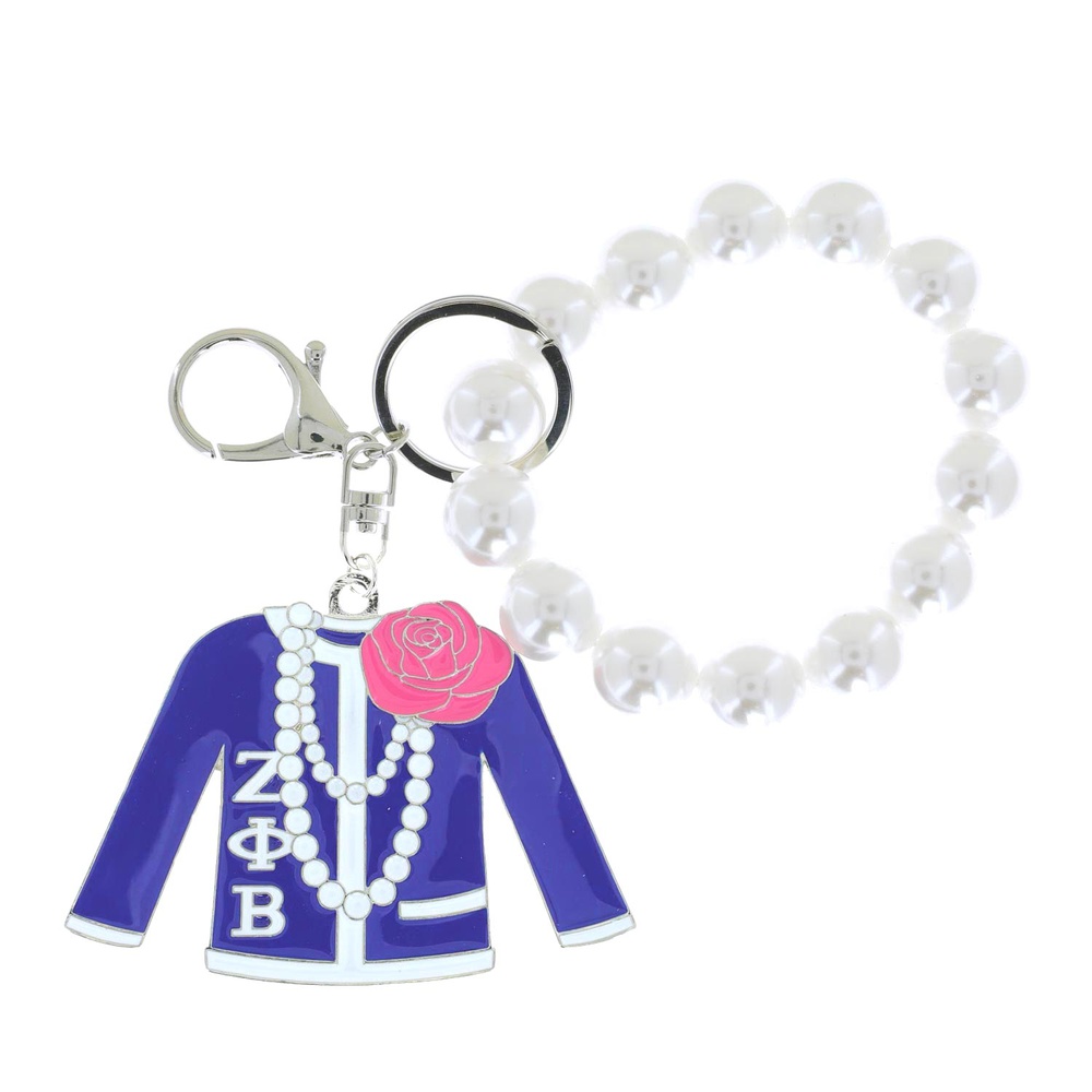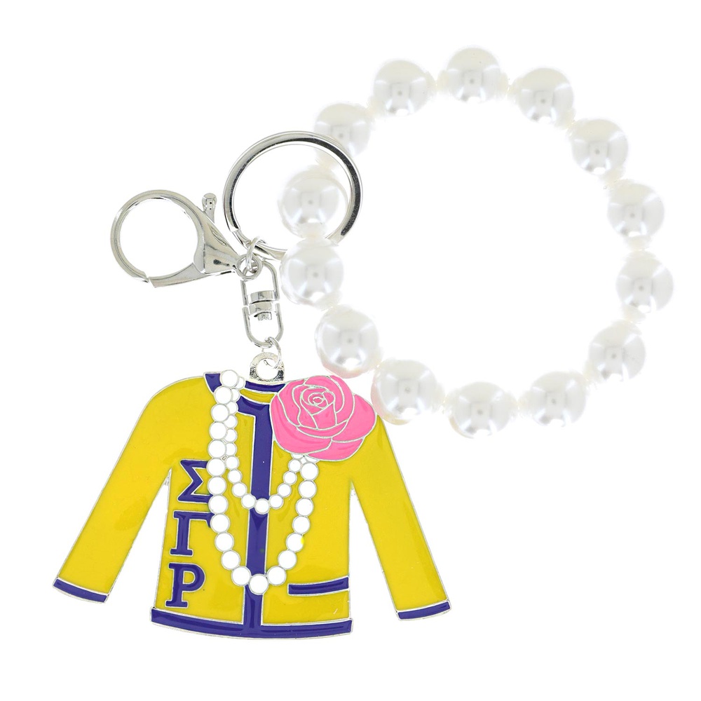 Alpha Kappa Alpha Greek Sorority Enamel Coated Pearl Keychain With Dual Split Ring And Lobster Claw Clasp