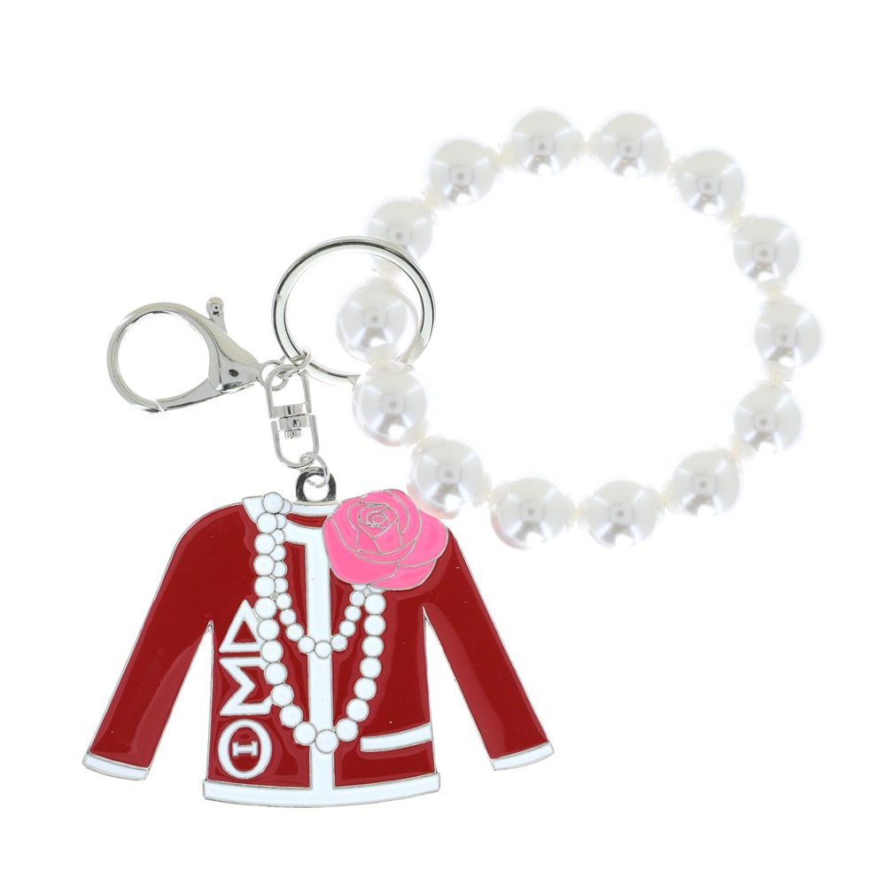 Delta Sigma Theta Greek Sorority Enamel Coated Pearl Keychain With Dual Split Ring And Lobster Claw Clasp