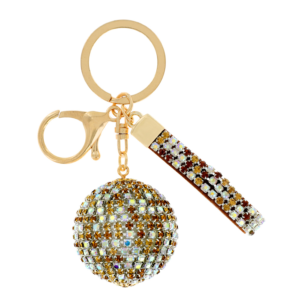 Disco Ball Rhinestone Keychain With Key Ring And Strap