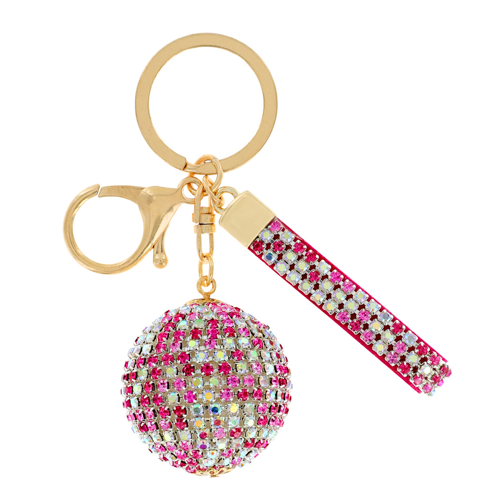 Disco Ball Rhinestone Keychain With Key Ring And Strap
