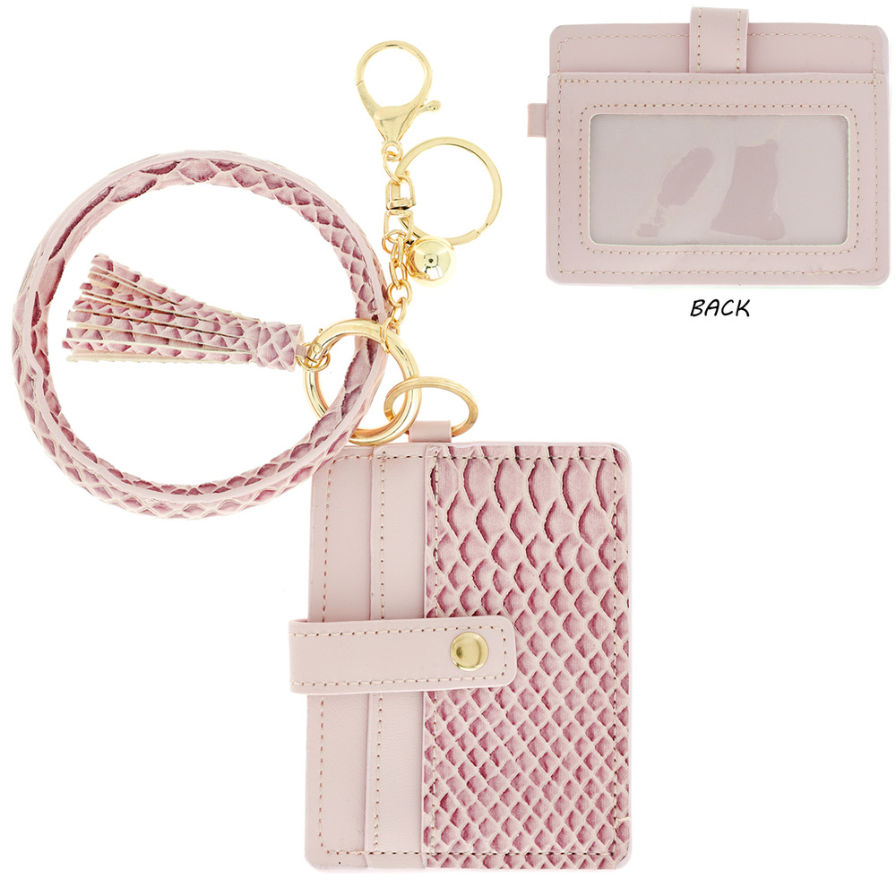 Snakeskin Pattern Pocket Wallet With Wristlet And Keychain