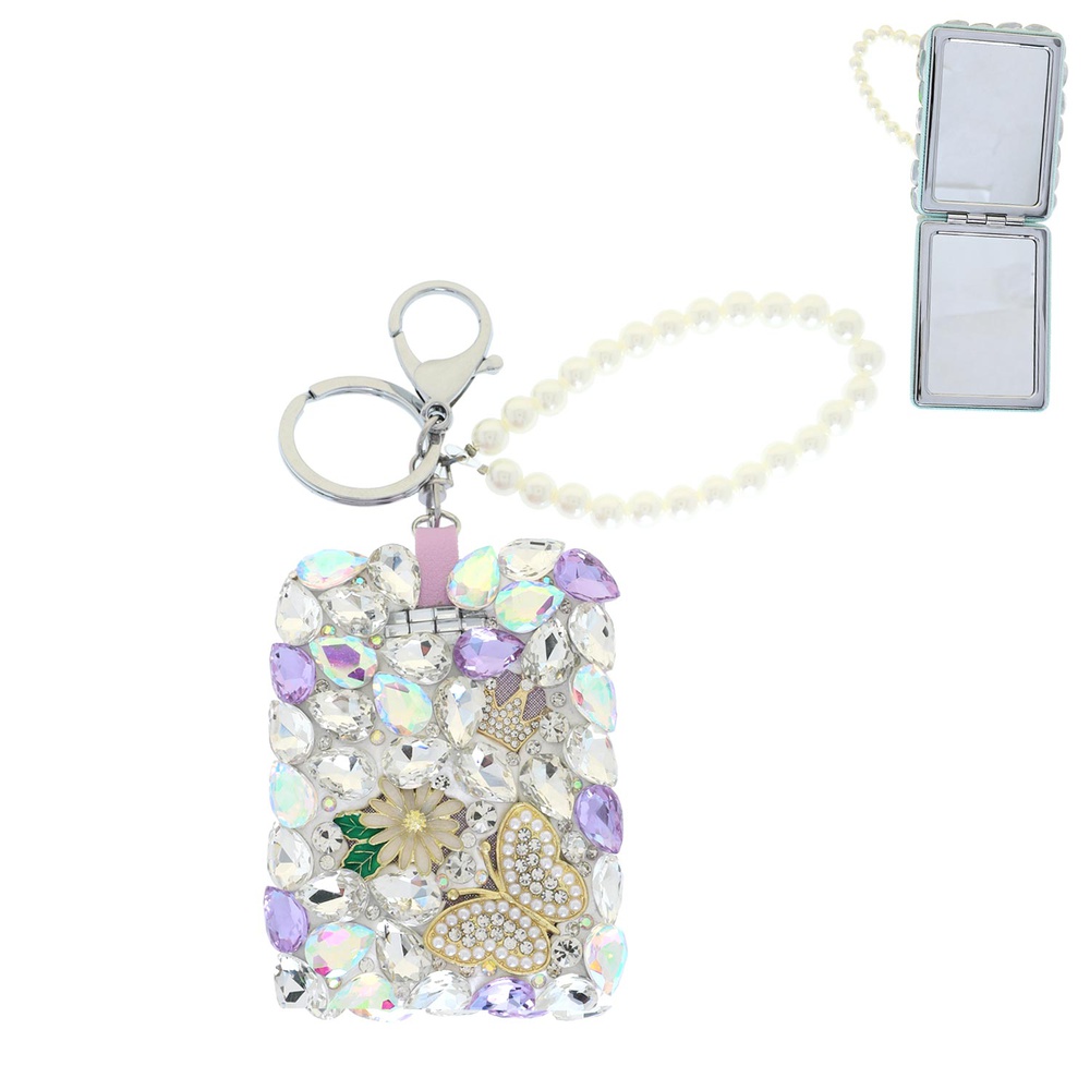 Rectangular Jeweled Crystal Rhinestone Compact Mirror Pearl Bracelet Wristlet Keychain
