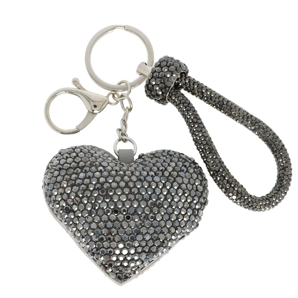 VALENTINE'S DAY HEART SHAPED JEWELED CRYSTAL RHINESTONE WRISTLET KEYCHAIN WITH DUAL SPLIT RING AND LOBSTER CLAW CLASP