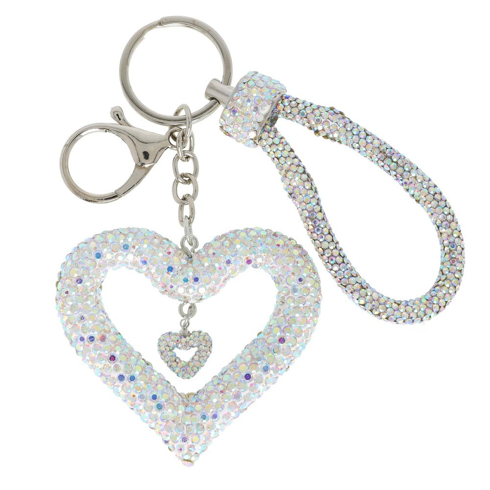 Crystal Rhinestone Open Heart Wristlet Keychain
