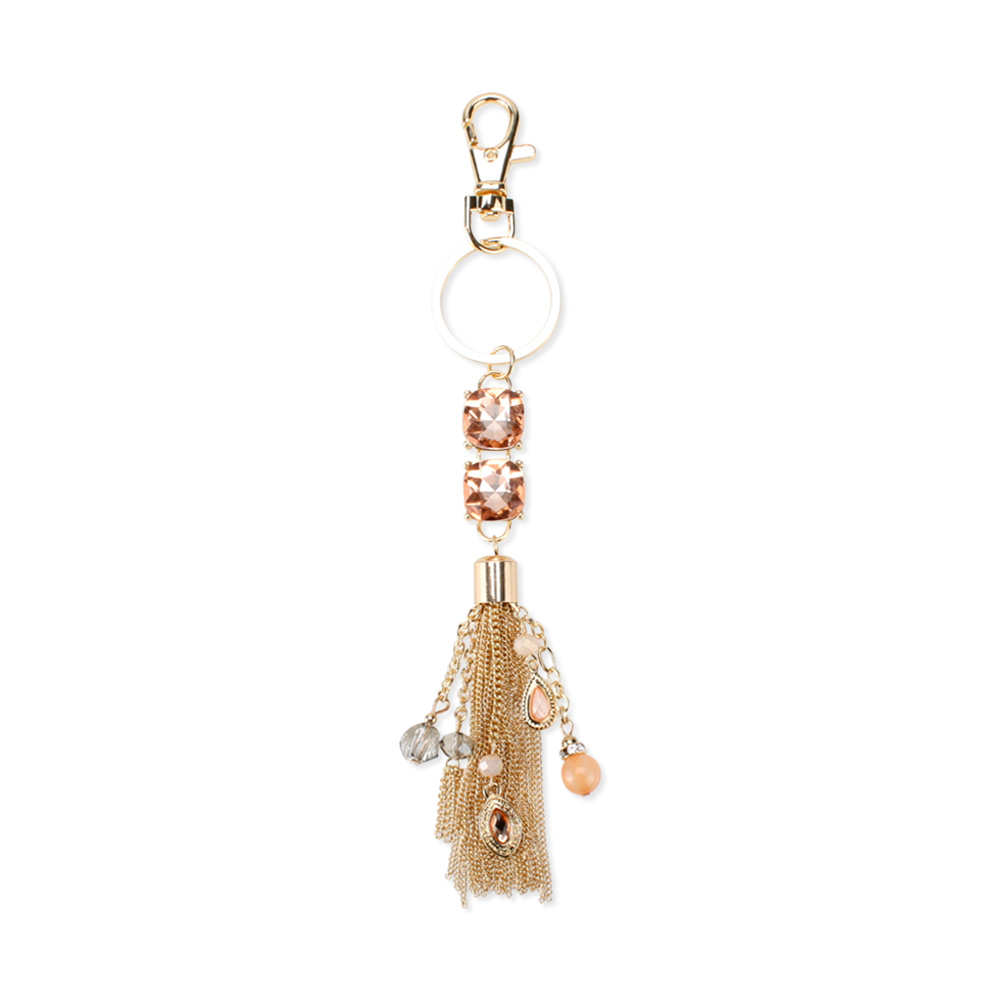 Chain Tassel With Dangly Beads And Stones Keychain Charm Kcy4996g