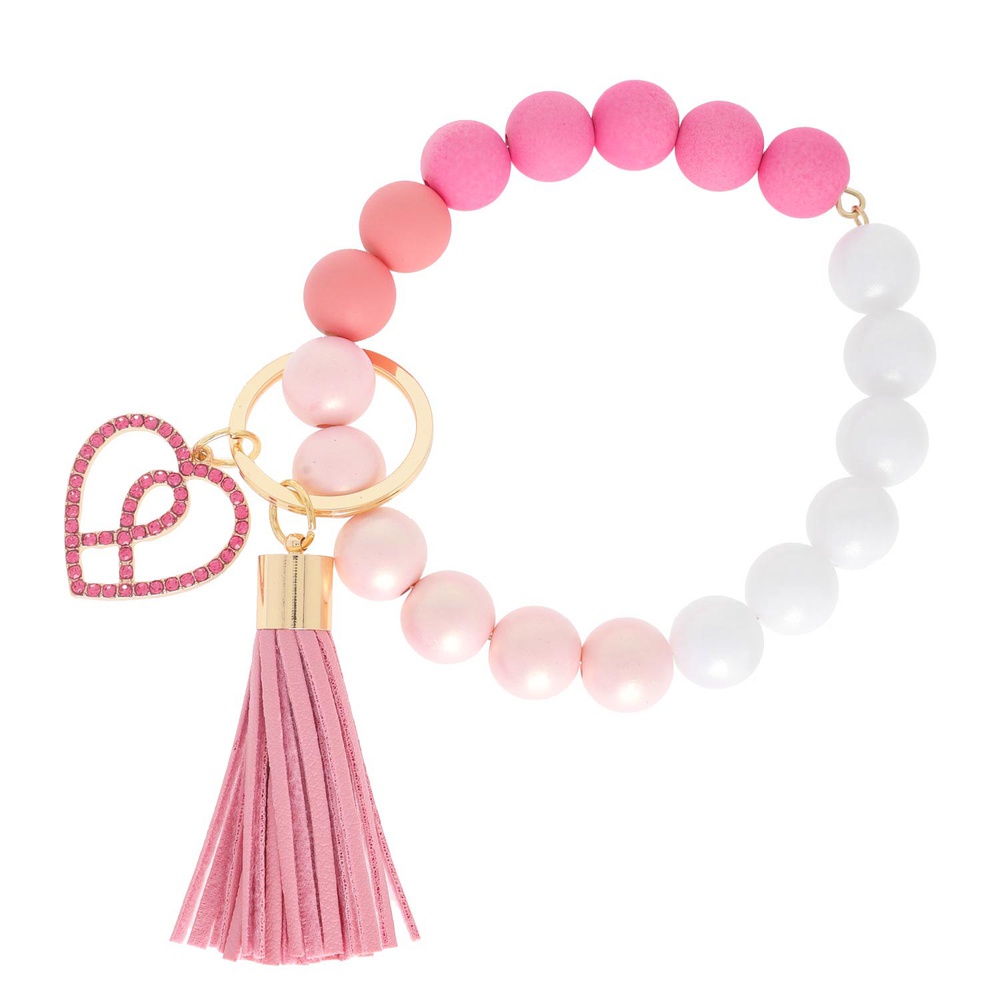 Pink Ribbon Heart Charm Fringe Keychain Bracelet