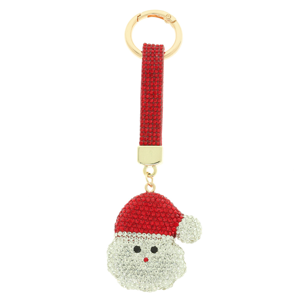 CHRISTMAS SANTA FACE RHINESTONE PAVE KEYCHAIN WITH WRIST STRAP