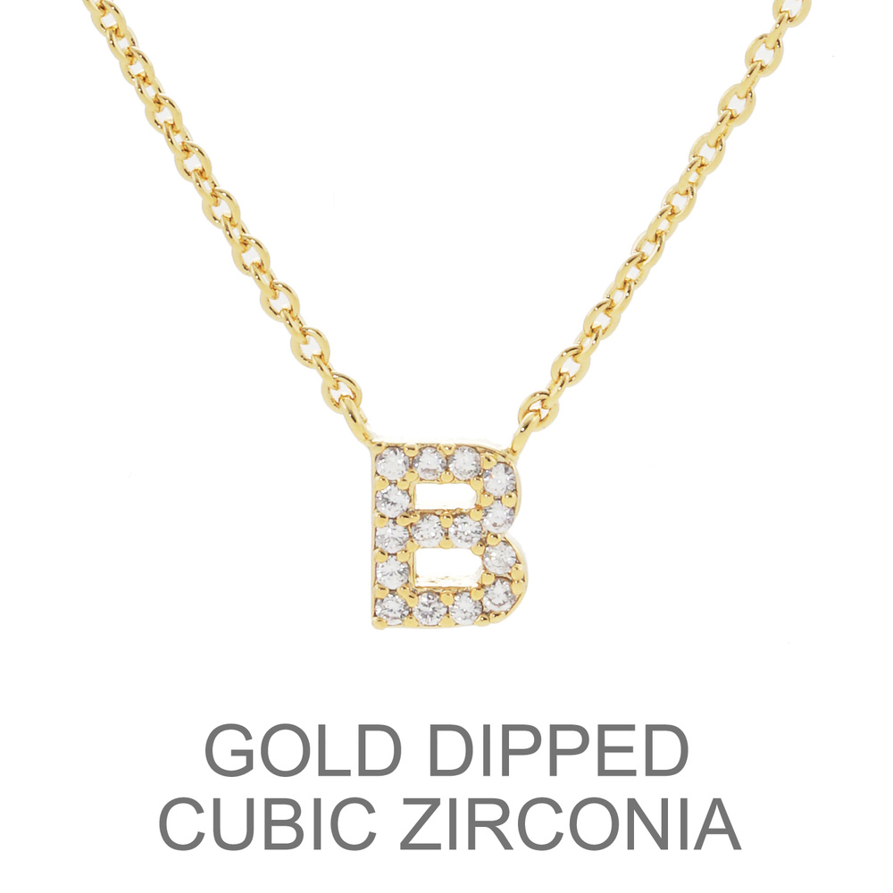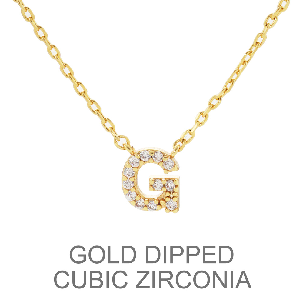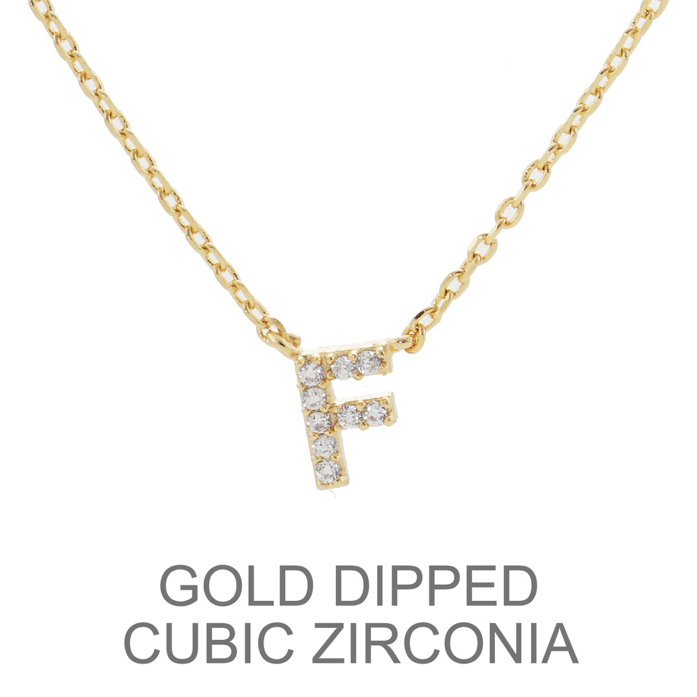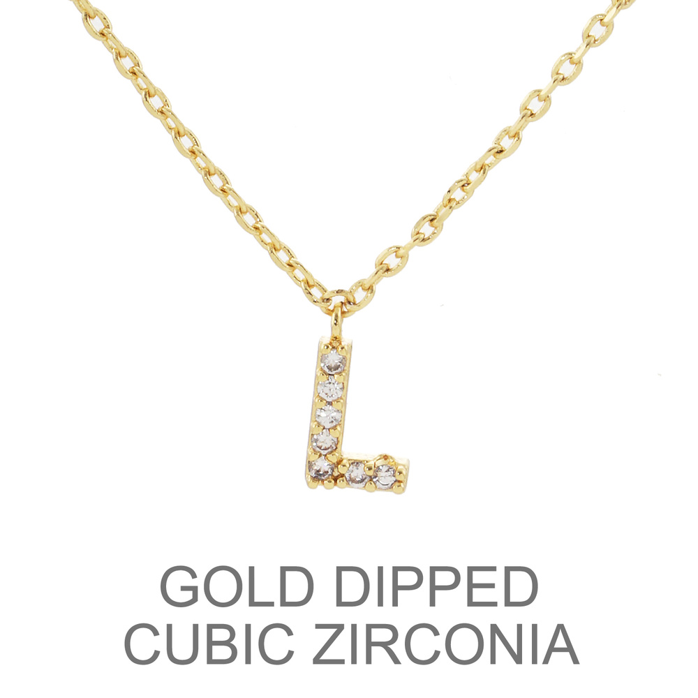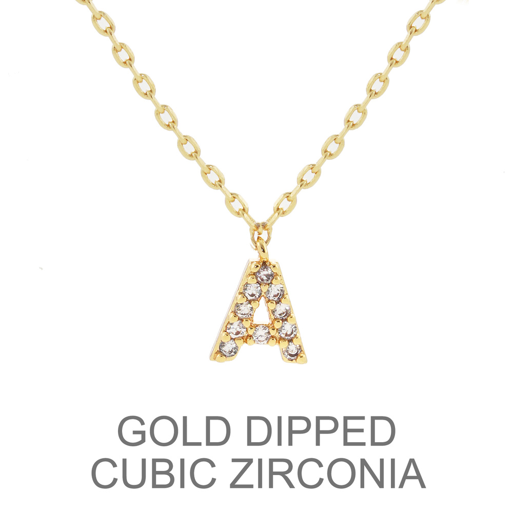 POLISHED GOLD DIPPED CUBIC ZIRCONIA INITIAL LETTER PENDANT NECKLACE