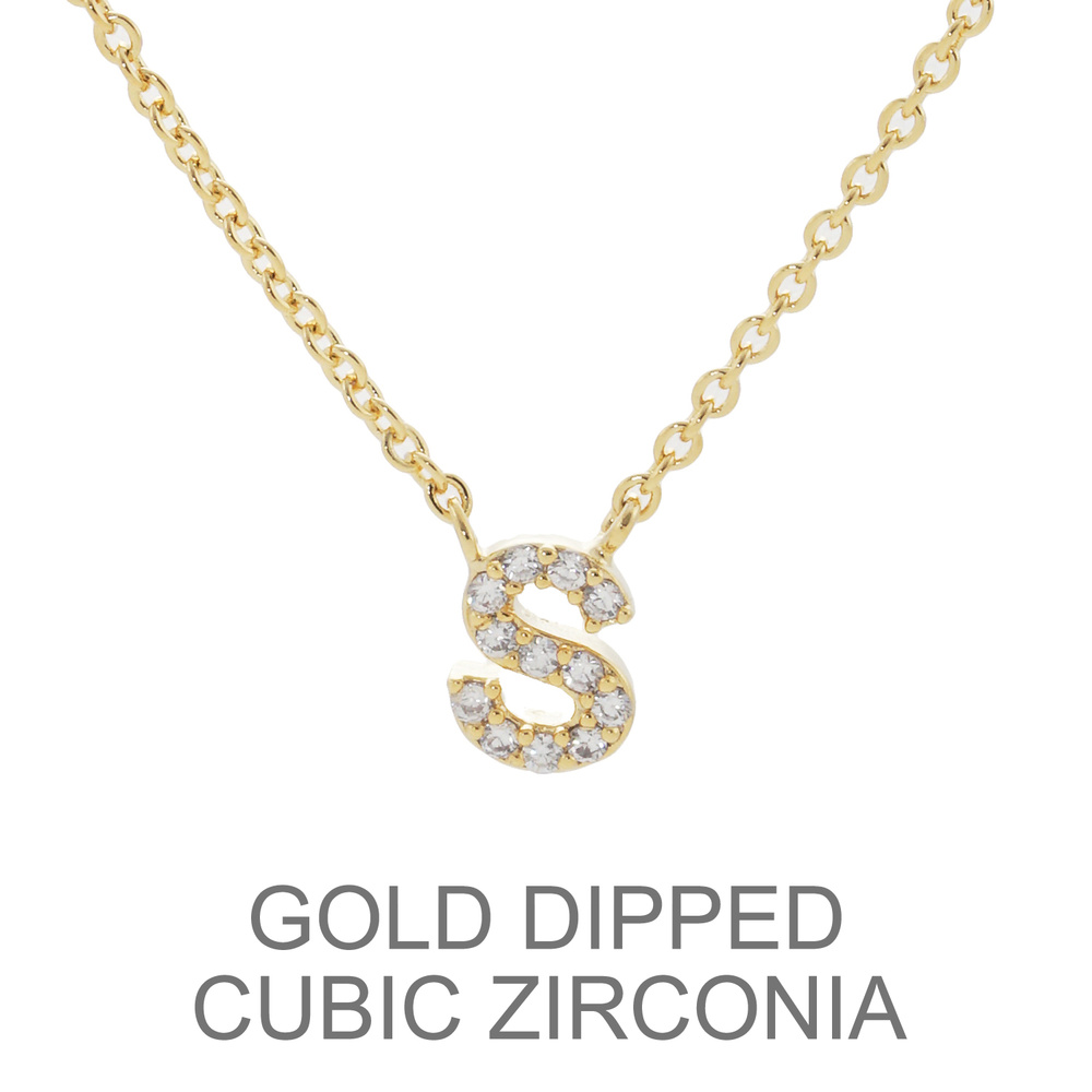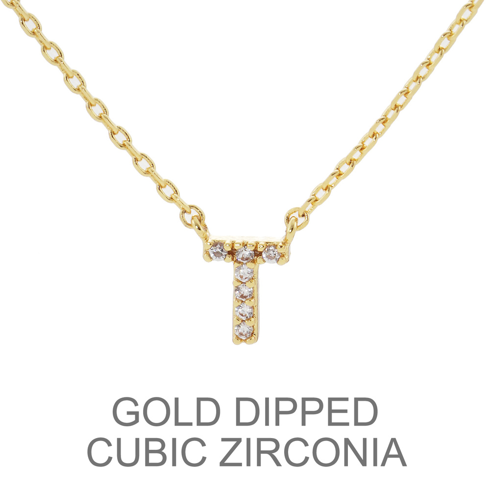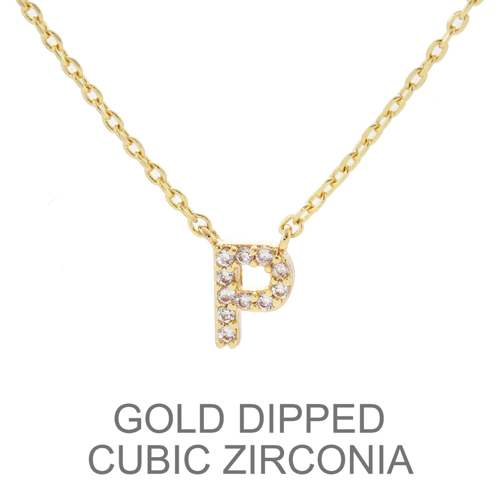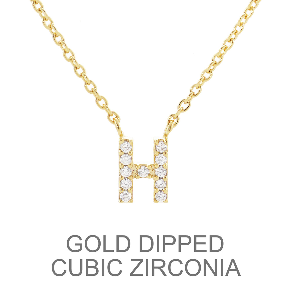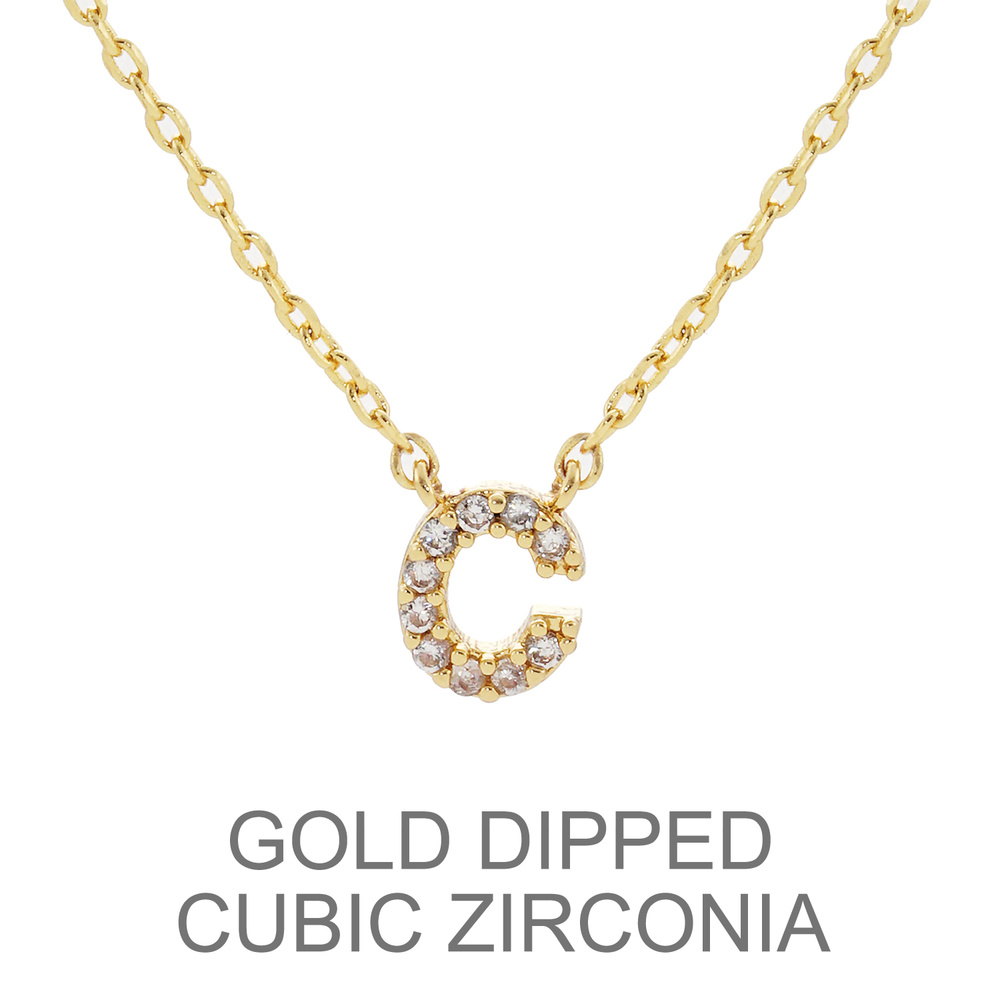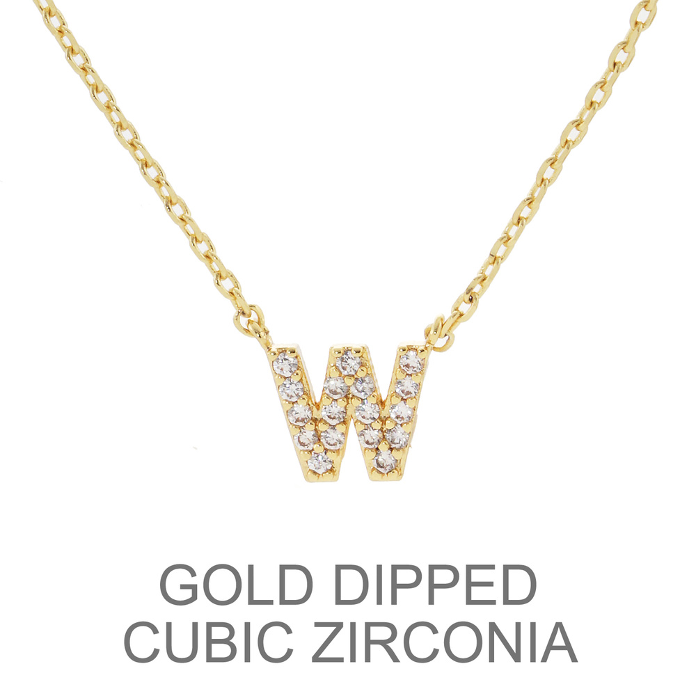POLISHED GOLD DIPPED CUBIC ZIRCONIA INITIAL LETTER PENDANT NECKLACE