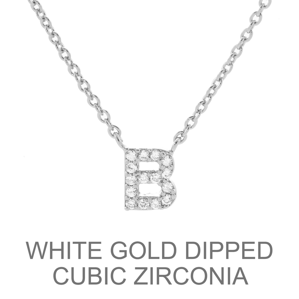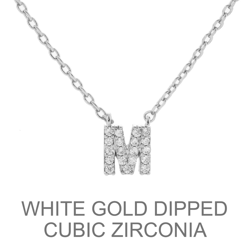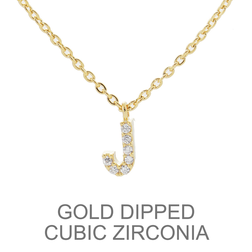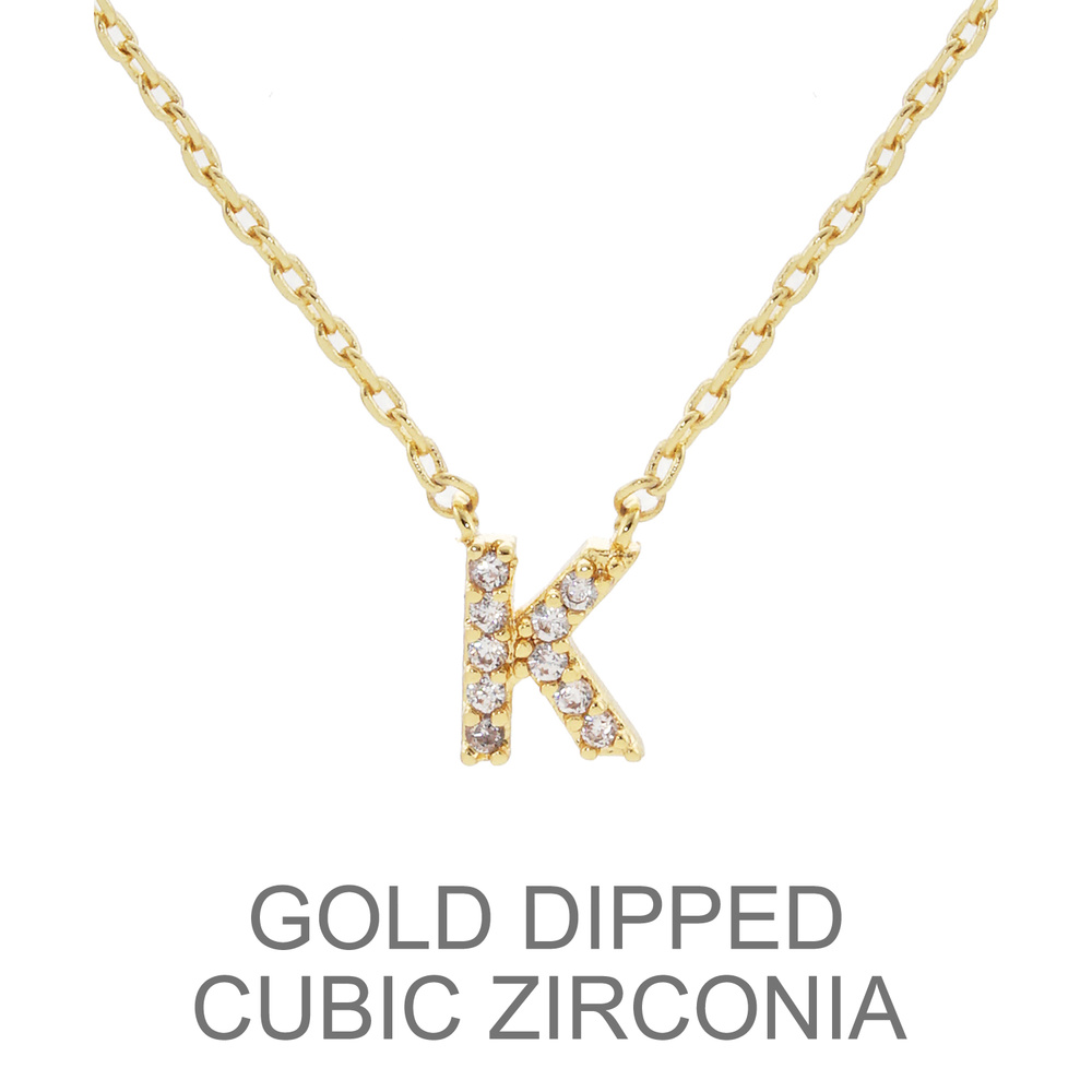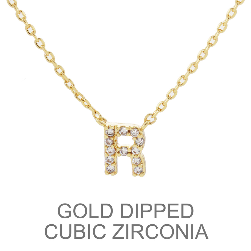POLISHED GOLD DIPPED CUBIC ZIRCONIA INITIAL LETTER PENDANT NECKLACE