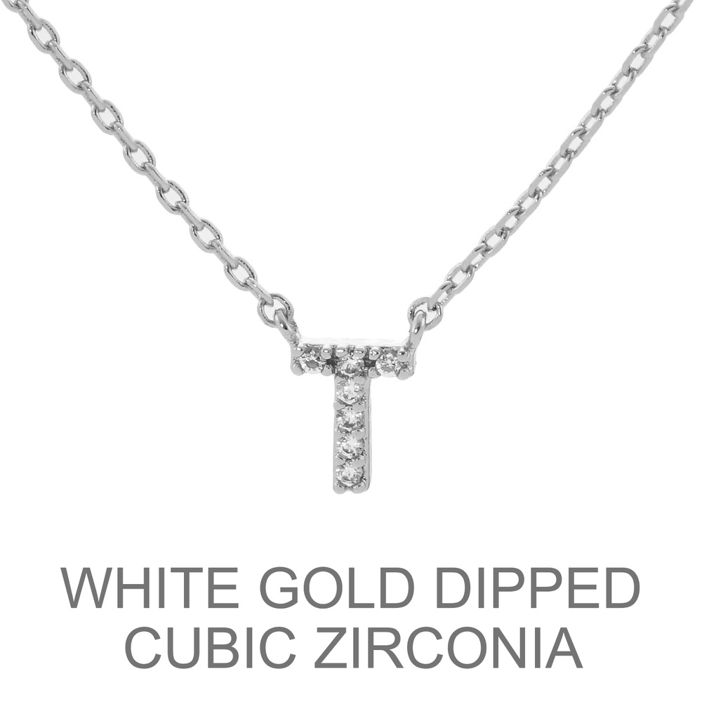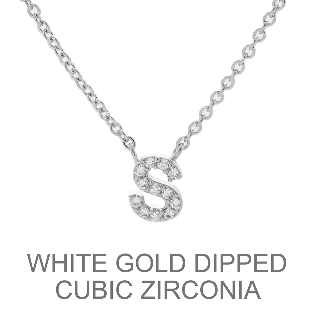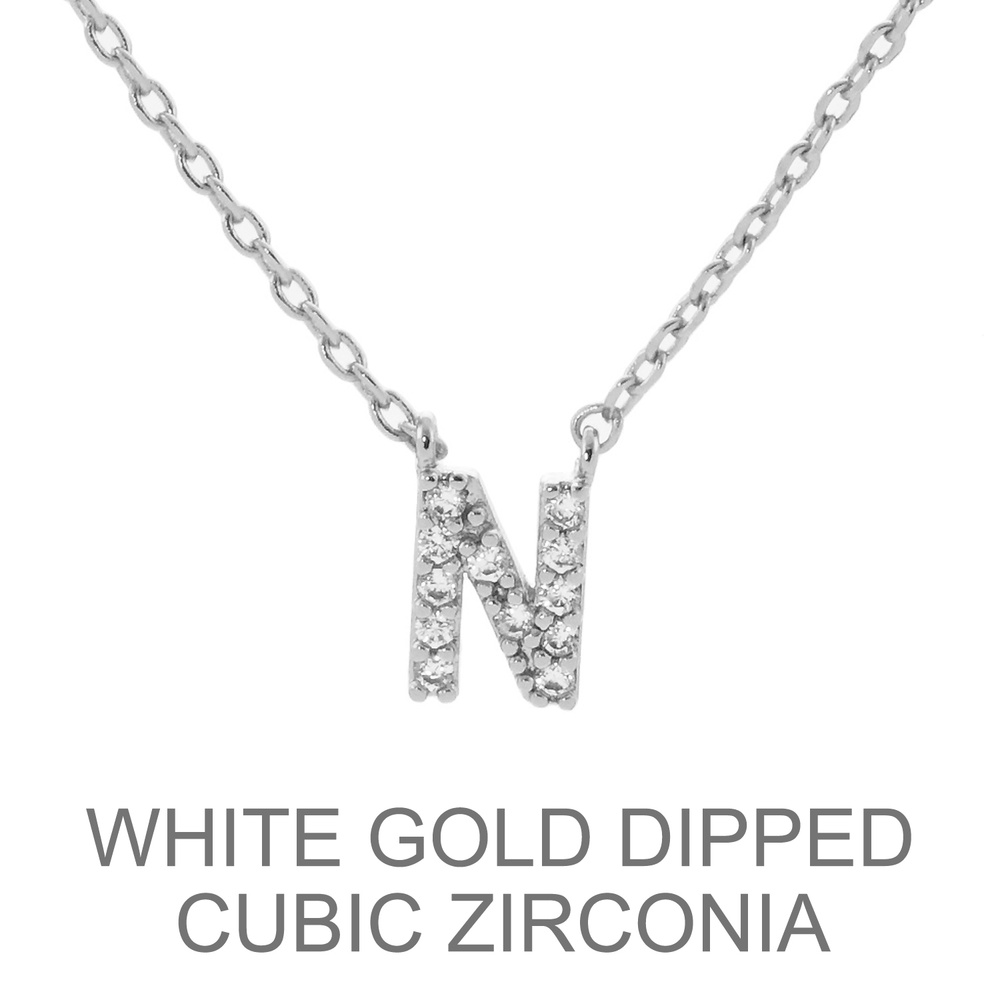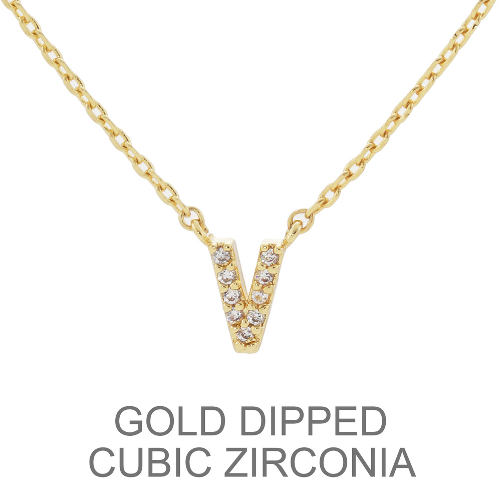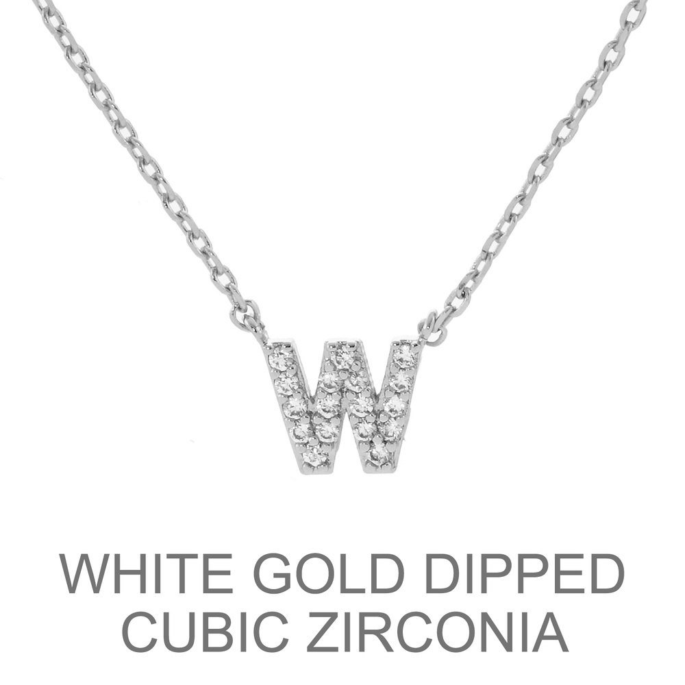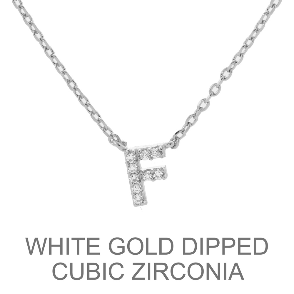 POLISHED GOLD DIPPED CUBIC ZIRCONIA INITIAL LETTER PENDANT NECKLACE