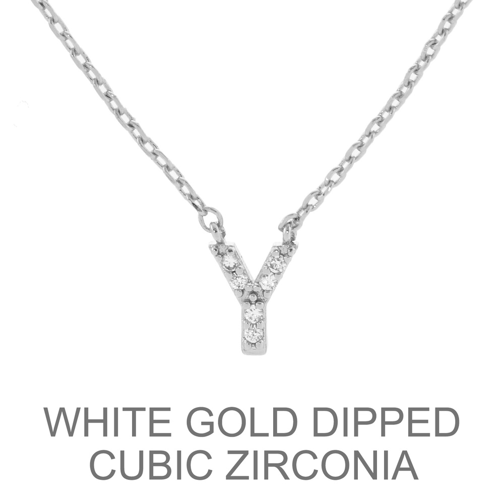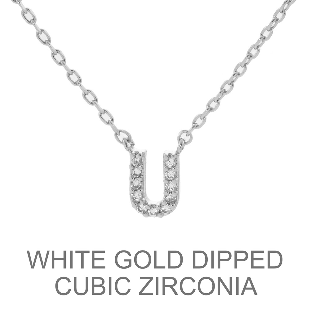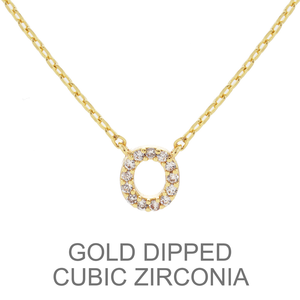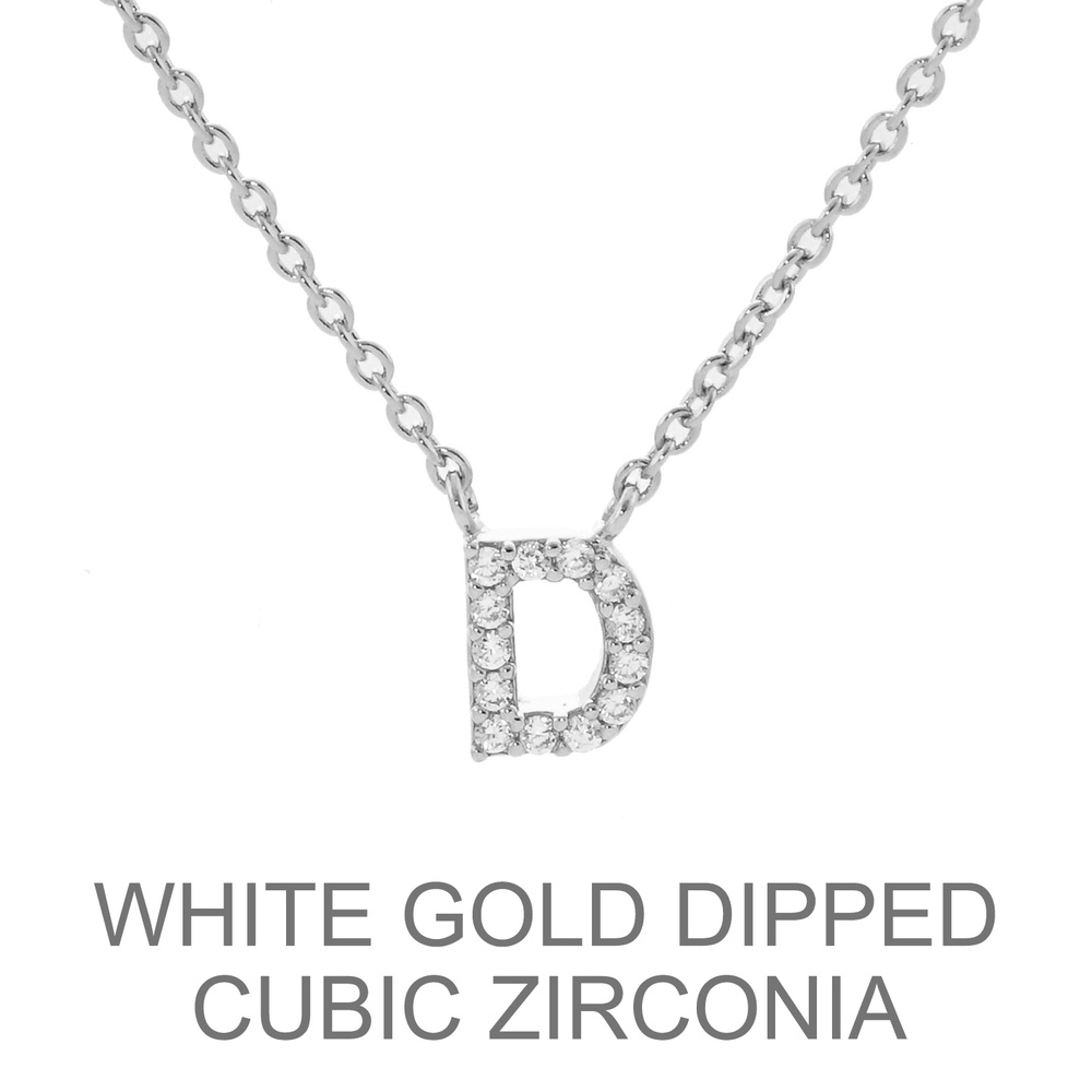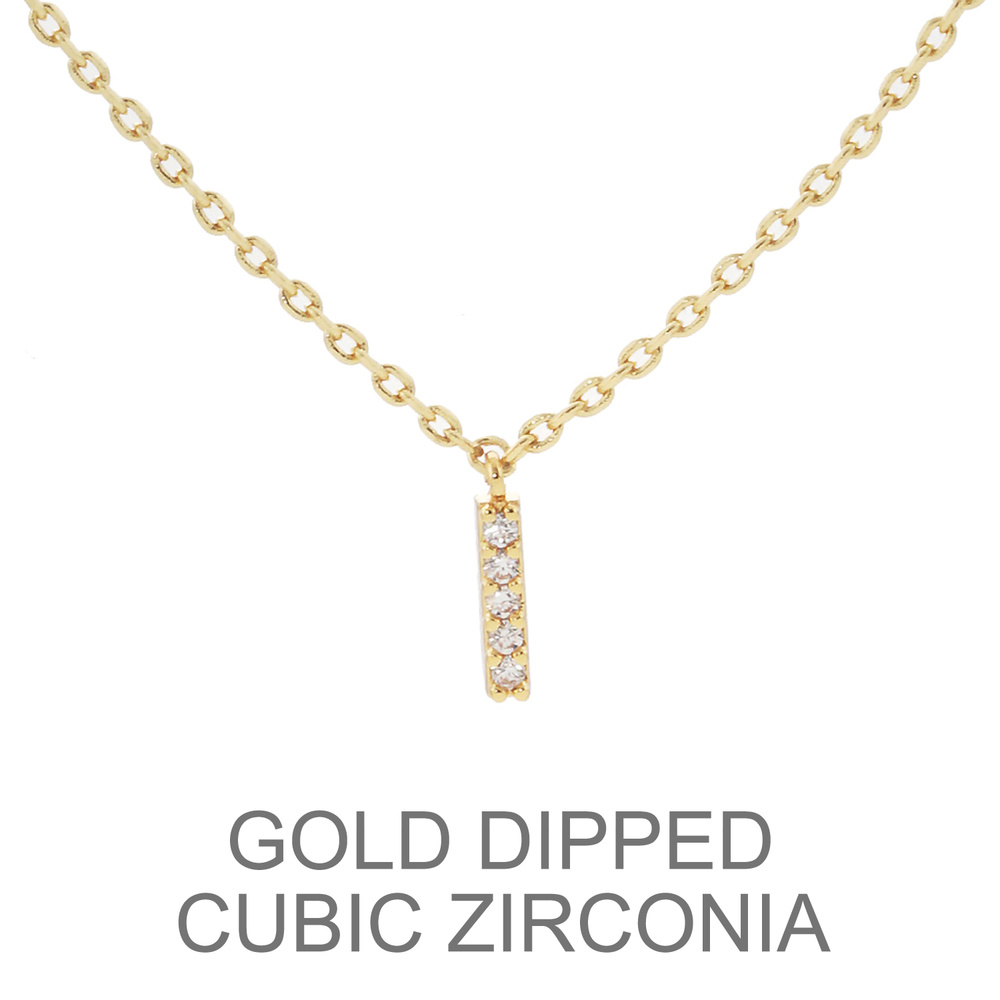 POLISHED GOLD DIPPED CUBIC ZIRCONIA INITIAL LETTER PENDANT NECKLACE