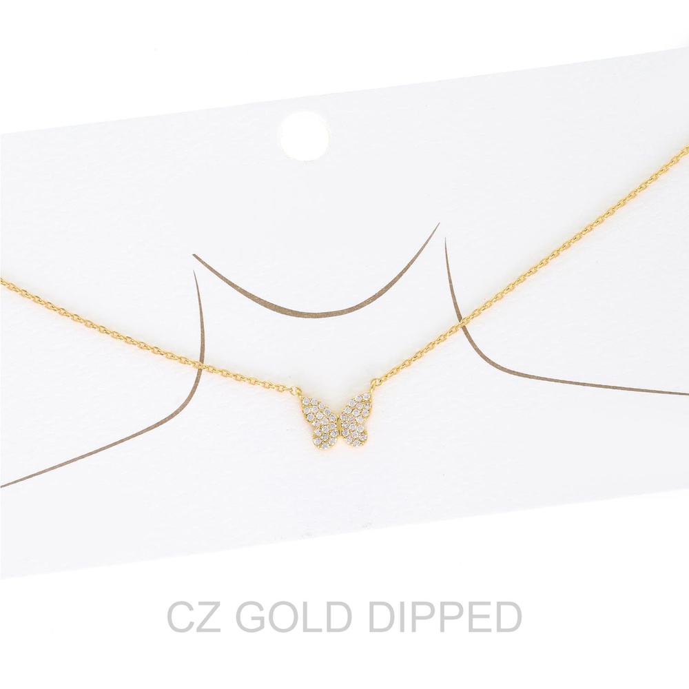 Women's Gold Dipped Cz Butterfly Necklace