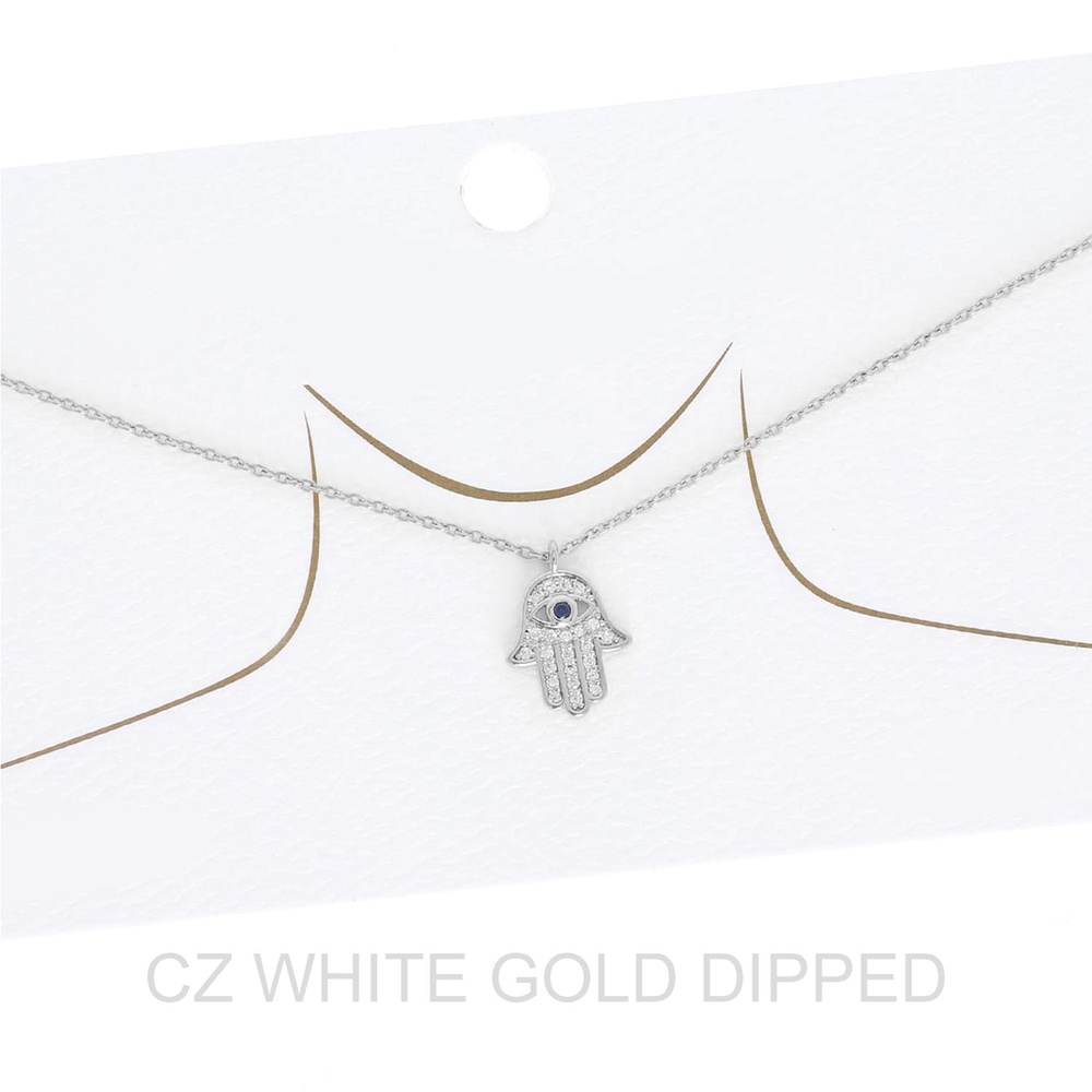 WOMEN'S GOLD DIPPED CUBIC ZIRCONIA HAMSA HAND ADJUSTABLE CHAIN NECKLACE