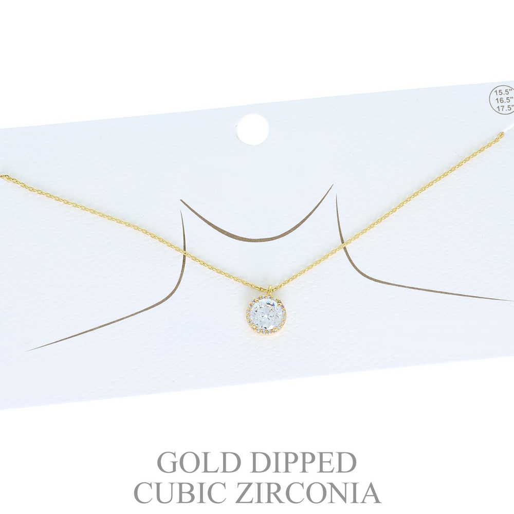15.5" GOLD PLATED ADJUSTABLE CUBIC ZIRCONIA SOLITAIRE PENDANT NECKLACE