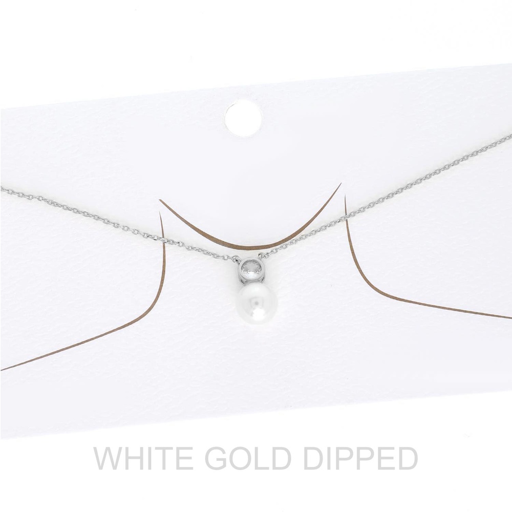 WOMEN'S GOLD DIPPED CUBIC ZIRCONIA ADJUSTABLE SINGLE PEARL CHAIN NECKLACE