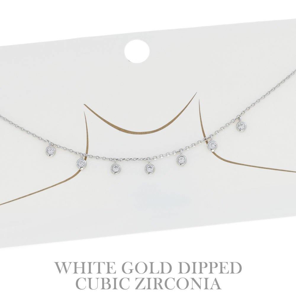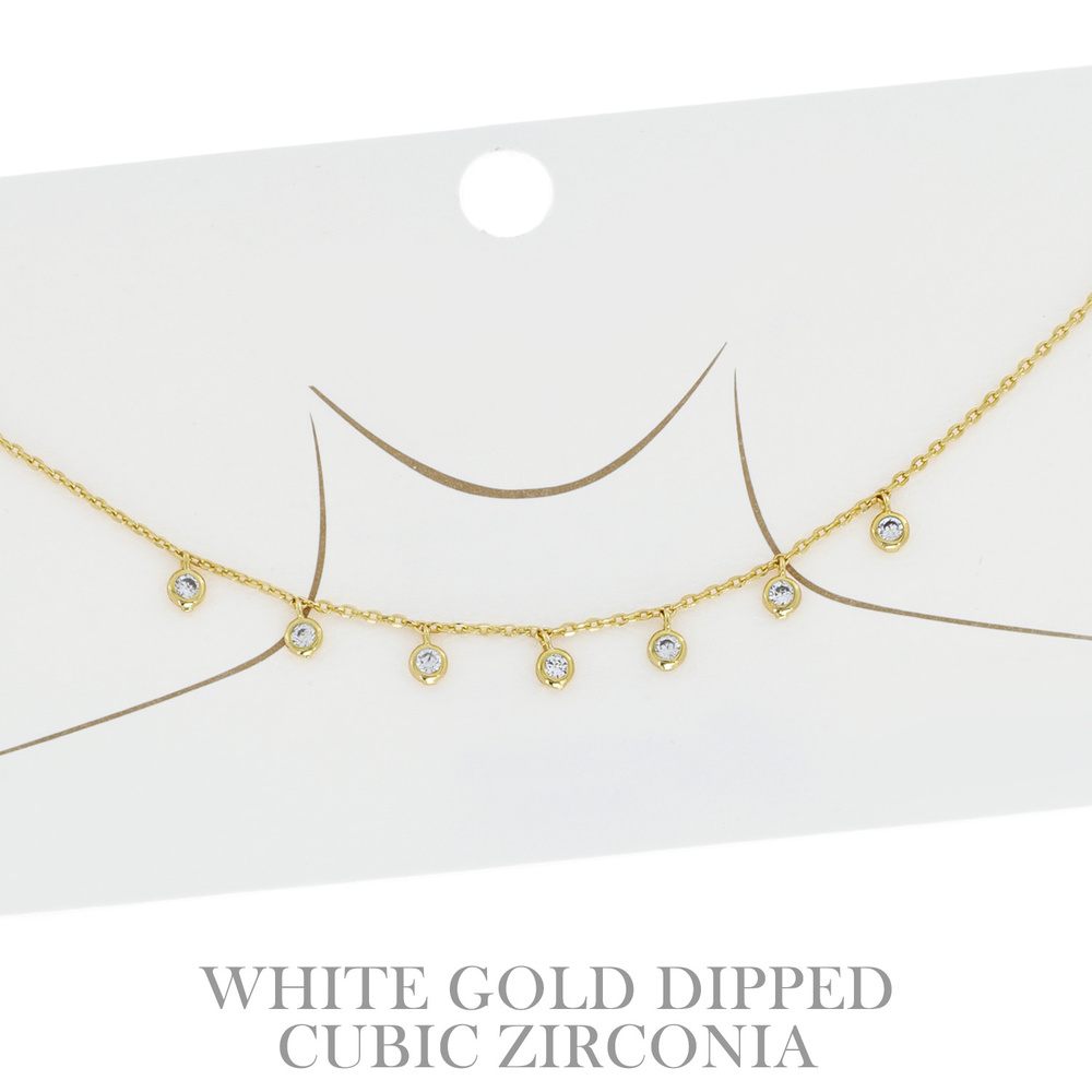 15" Gold Dipped Adjustable Cubic Zirconia Disc Station Necklace