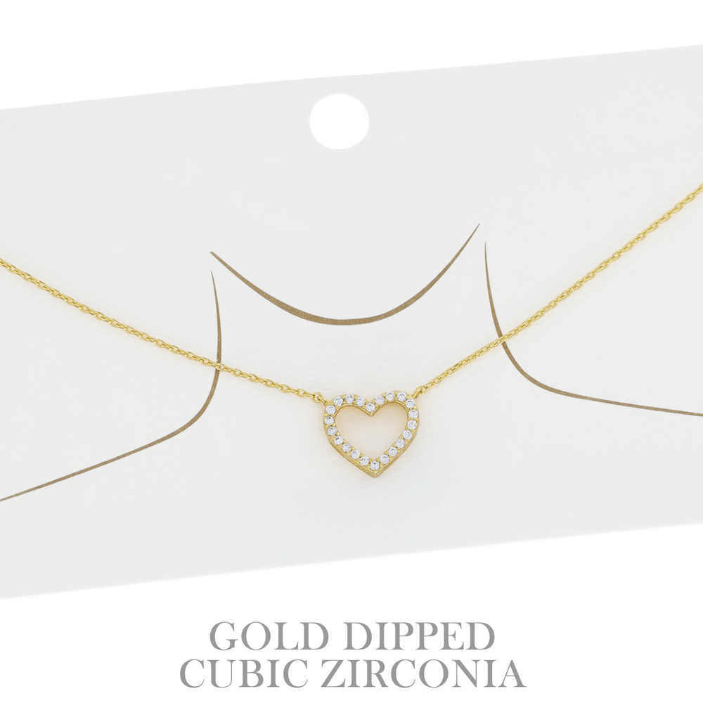 15" OPEN HEART CUBIC ZIRCONIA PAVE GOLD DIPPED ADJUSTABLE PENDANT NECKLACE