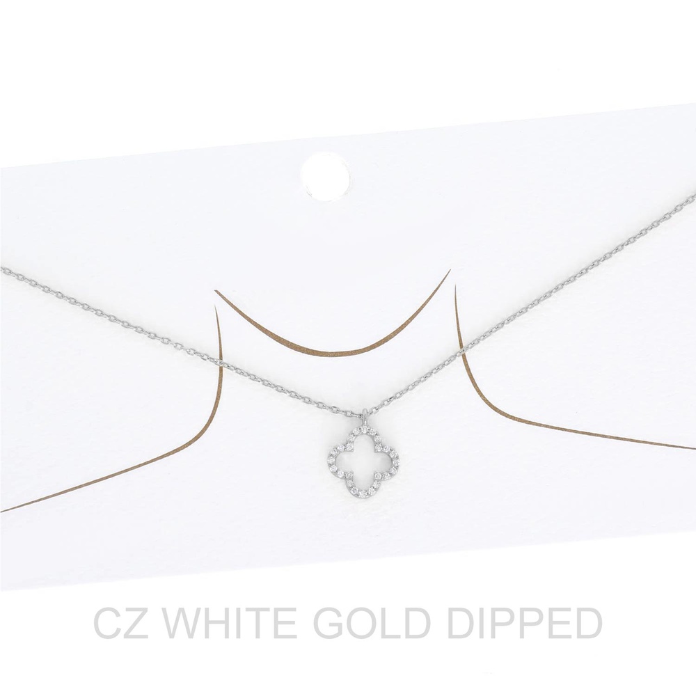 WOMEN'S GOLD DIPPED CUBIC ZIRCONIA PAVE ADJUSTABLE QUATREFOIL CHAIN NECKLACE