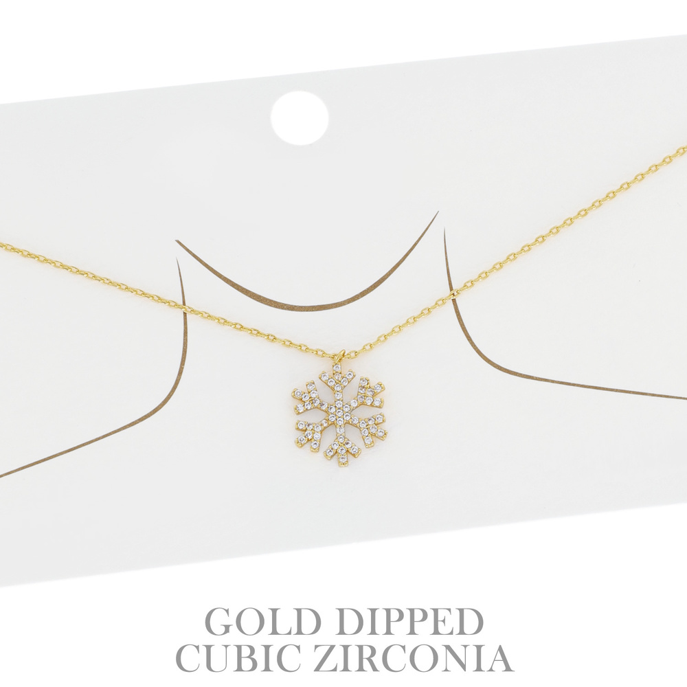 15" SNOWFLAKE CUBIC ZIRCONIA PAVE GOLD DIPPED ADJUSTABLE PENDANT NECKLACE