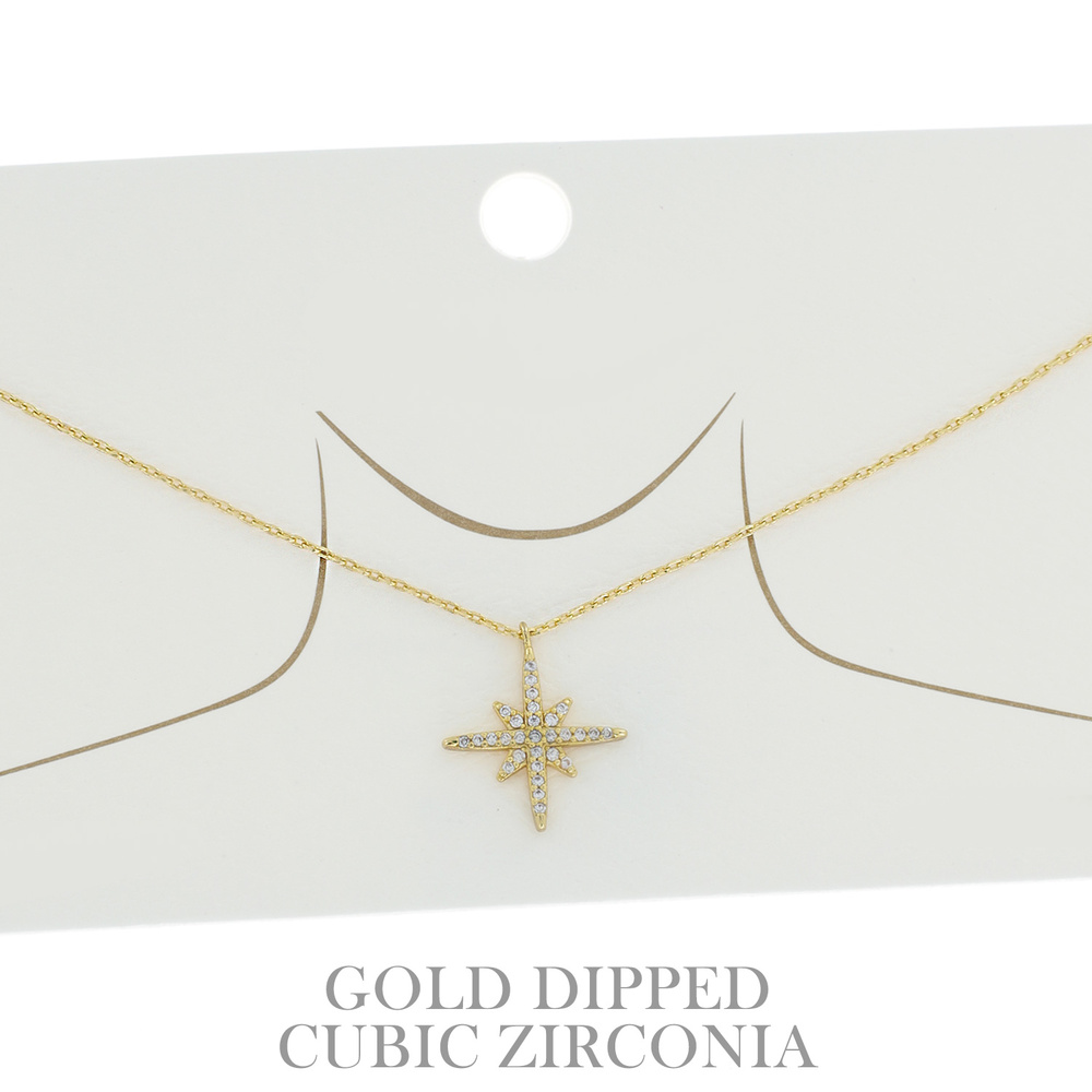15" GOLD PLATED CUBIC ZIRCONIA PAVE ADJUSTABLE NORTH STAR PENDANT NECKLACE IN WHITE AND YELLOW GOLD PLATTING made in KOREA
