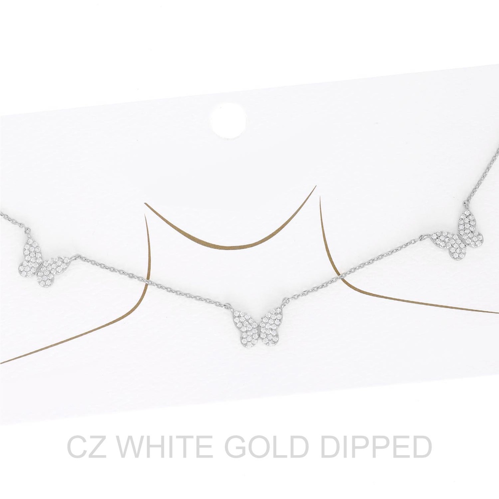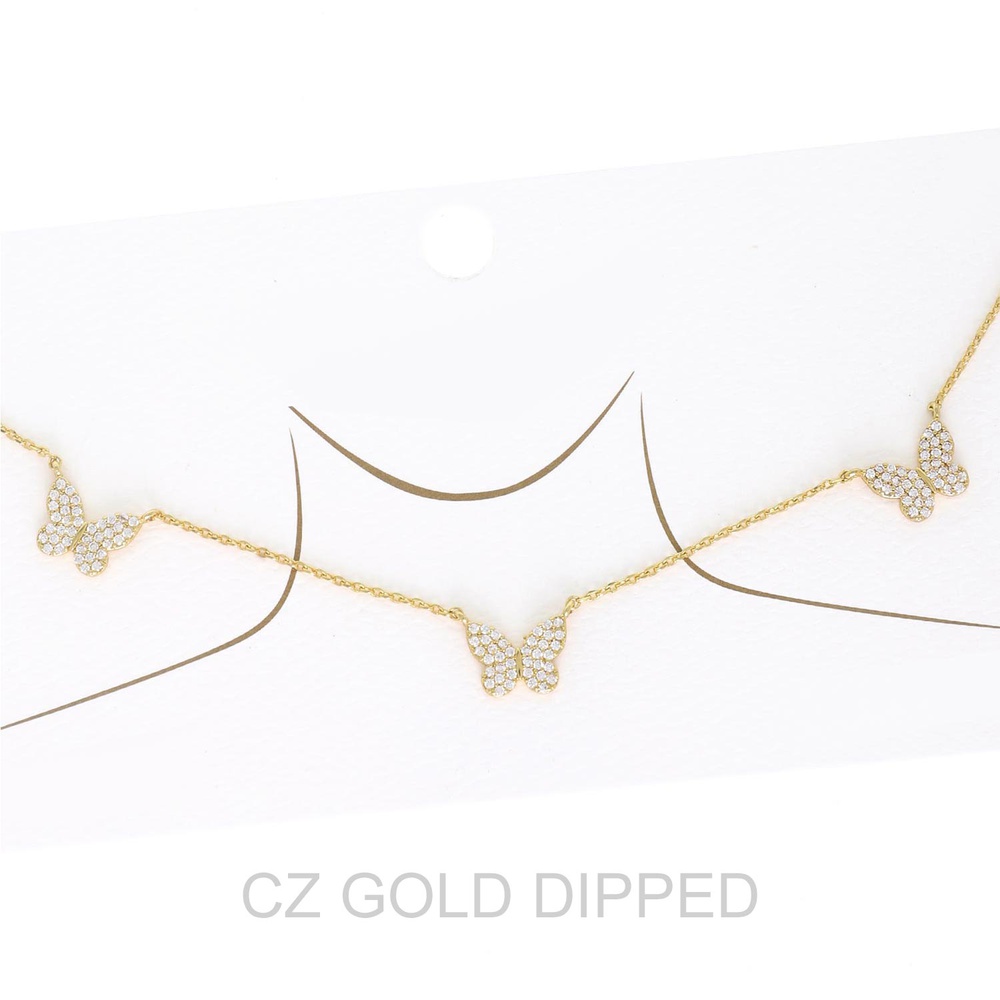 WOMEN'S GOLD DIPPED CUBIC ZIRCONIA PAVE ADJUSTABLE BUTTERFLY LINK CHAIN NECKLACE