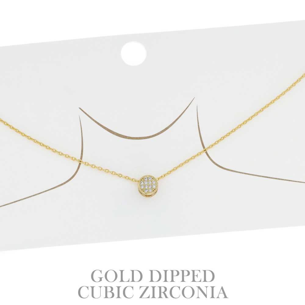 15" Cubic Zirconia Pave Gold Dipped Adjustable Disc Pendant Necklace