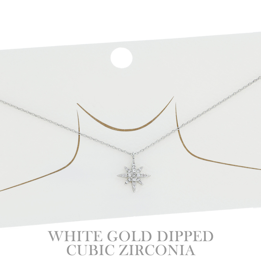 15" GOLD PLATED CUBIC ZIRCONIA PAVE ADJUSTABLE NORTH STAR PENDANT NECKLACE IN WHITE AND YELLOW GOLD PLATTING made in KOREA