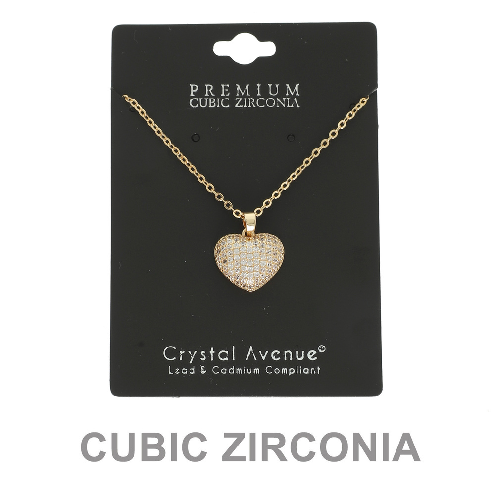 CUBIC ZIRCONIA PAVE PUFF HEART PENDANT NECKLACE