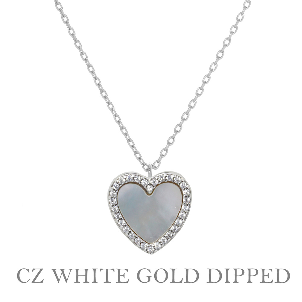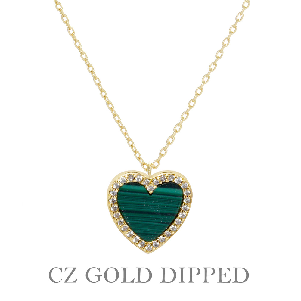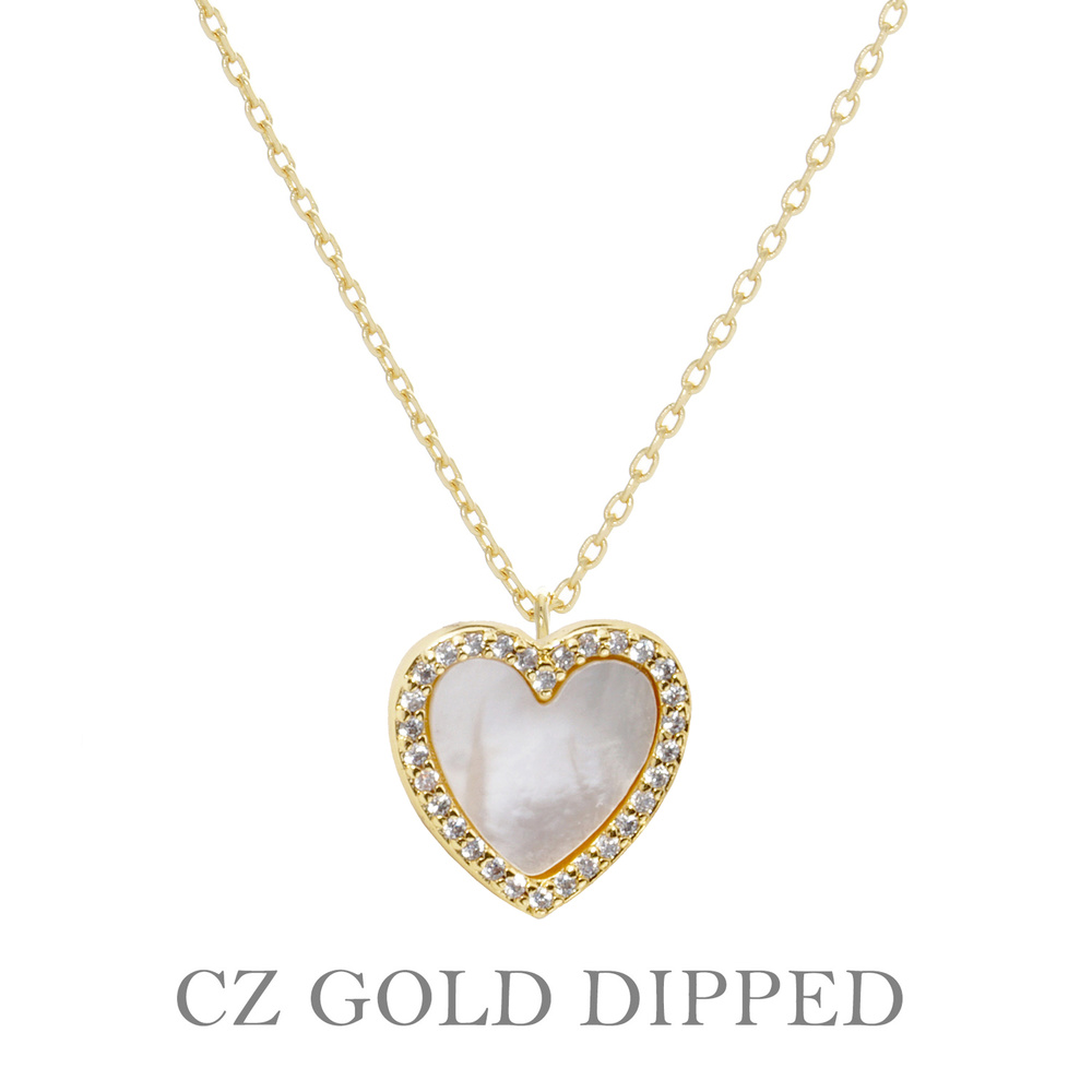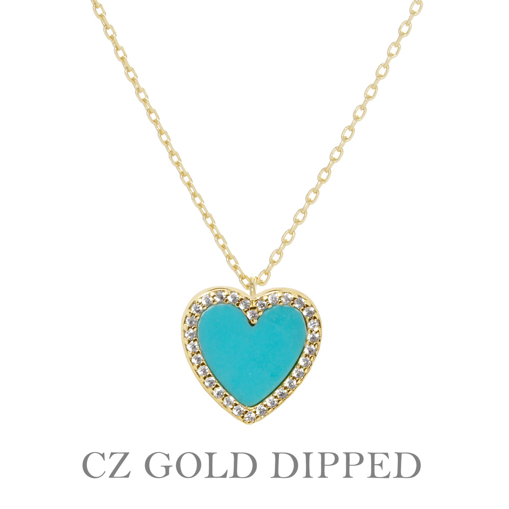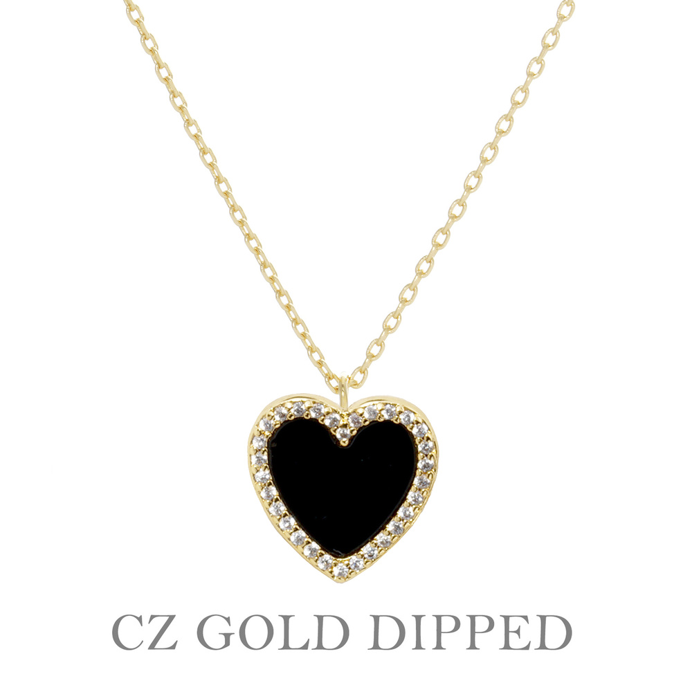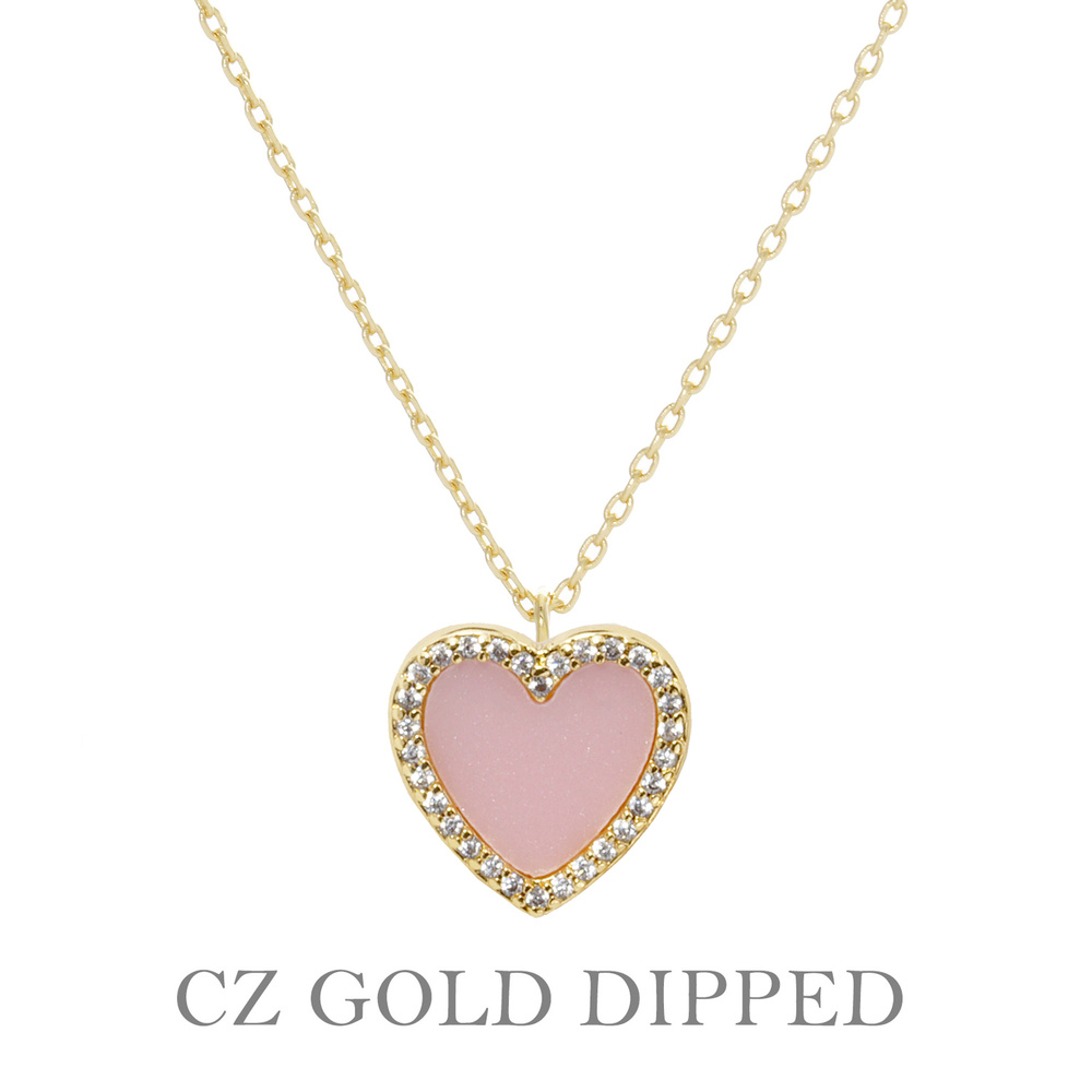 GOLD PLATED CUBIC ZIRCONIA HALO ENAMEL HEART PENDANT NECKLACE