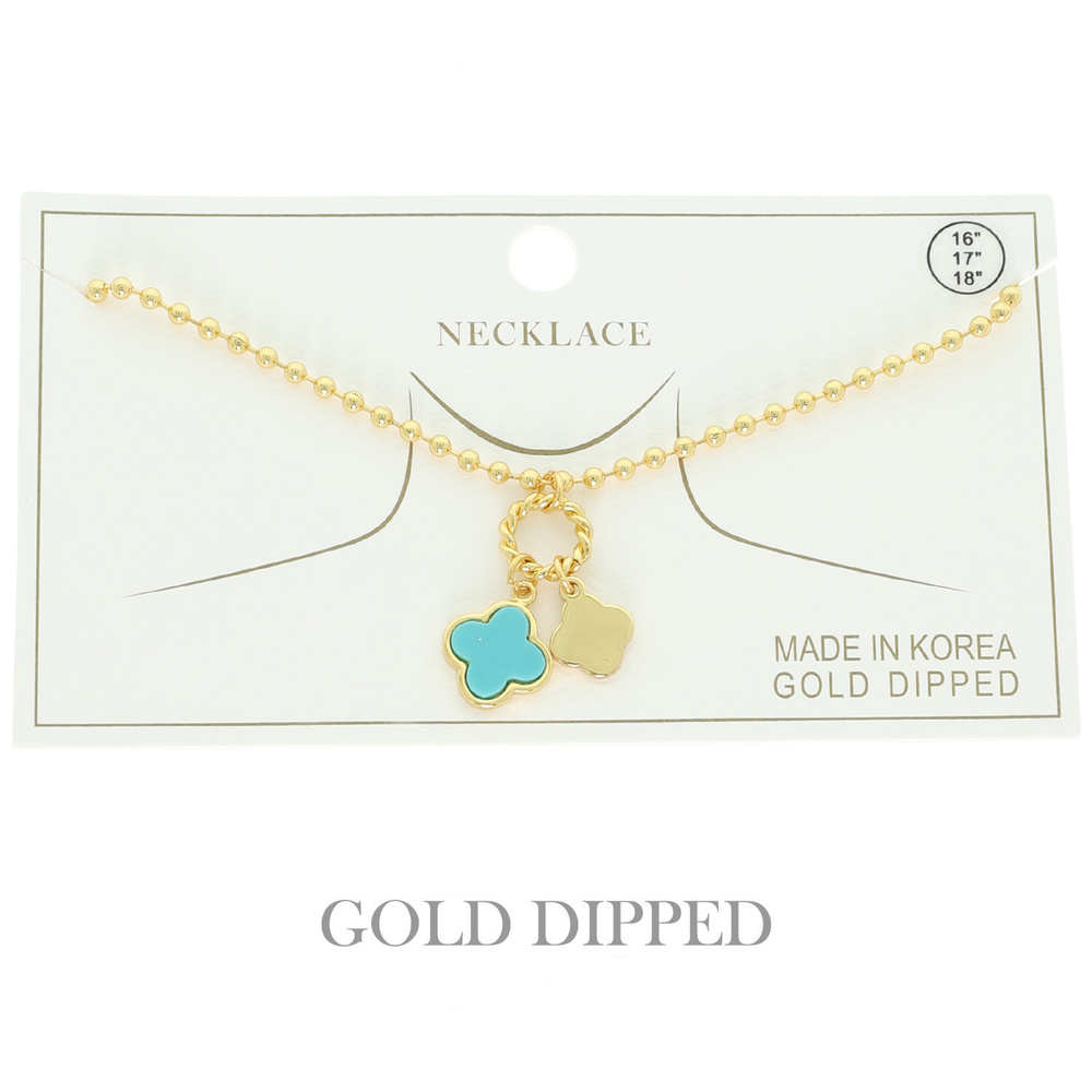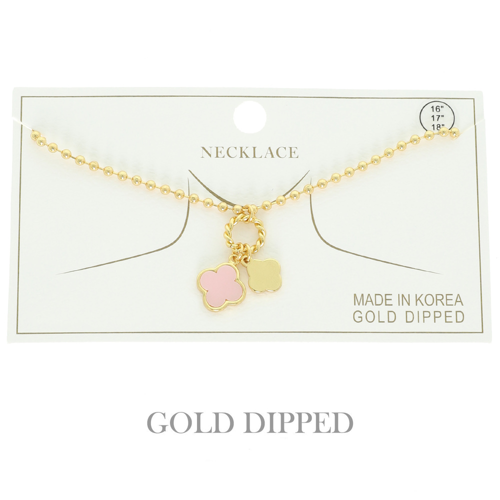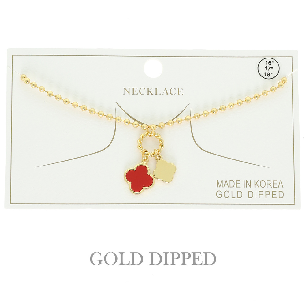 ENAMEL INLAY DUAL QUATREFOIL CLOVER PENDANT BALL CHAIN NECKLACE