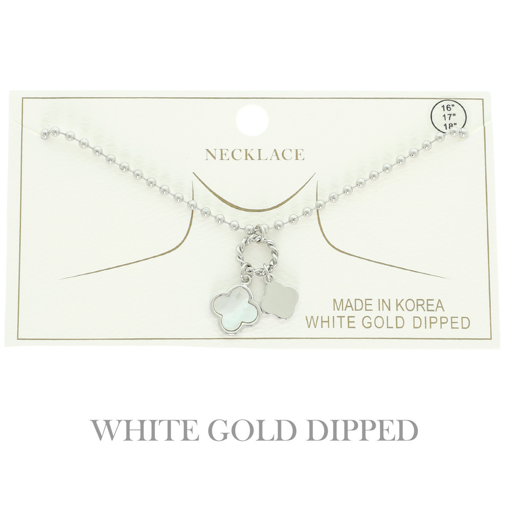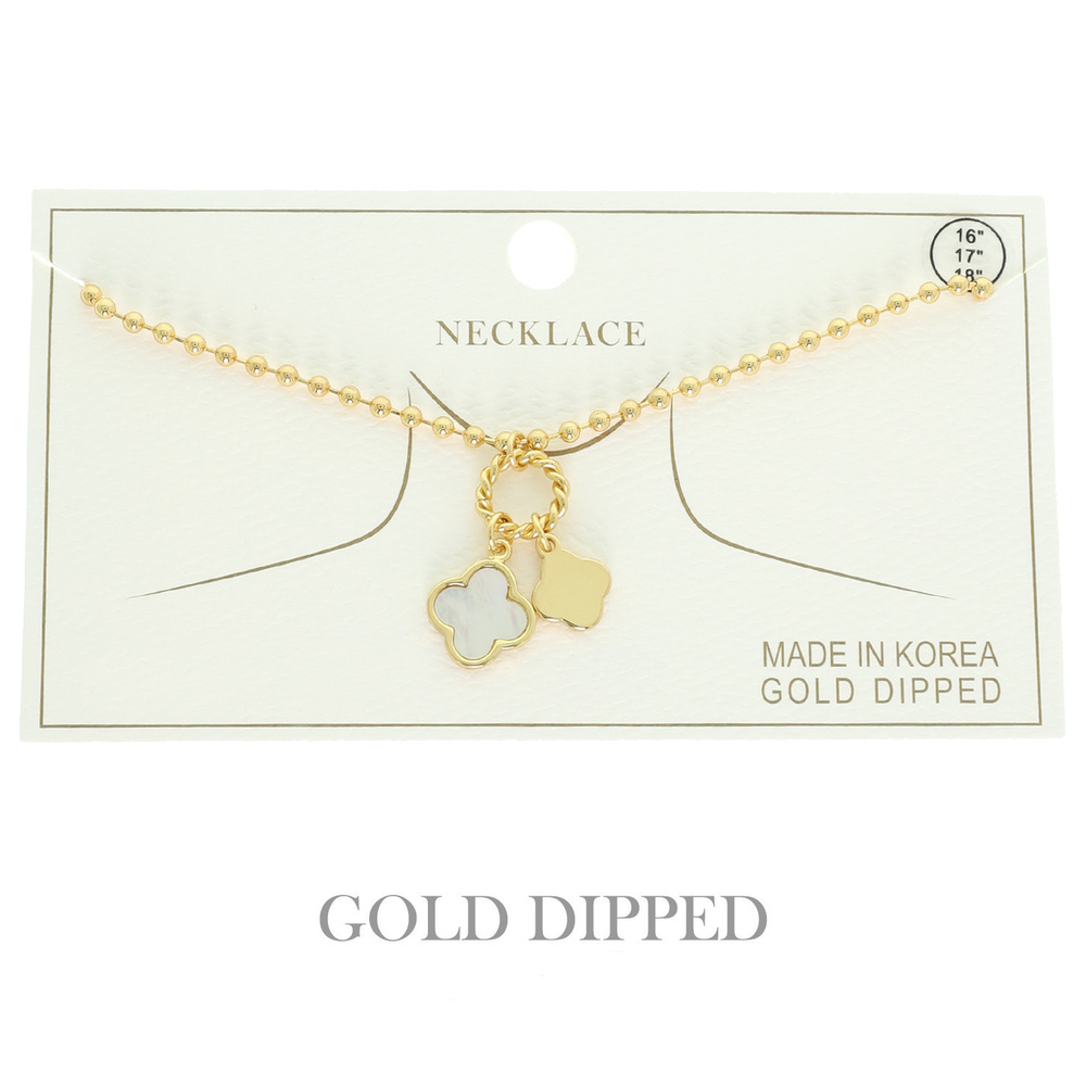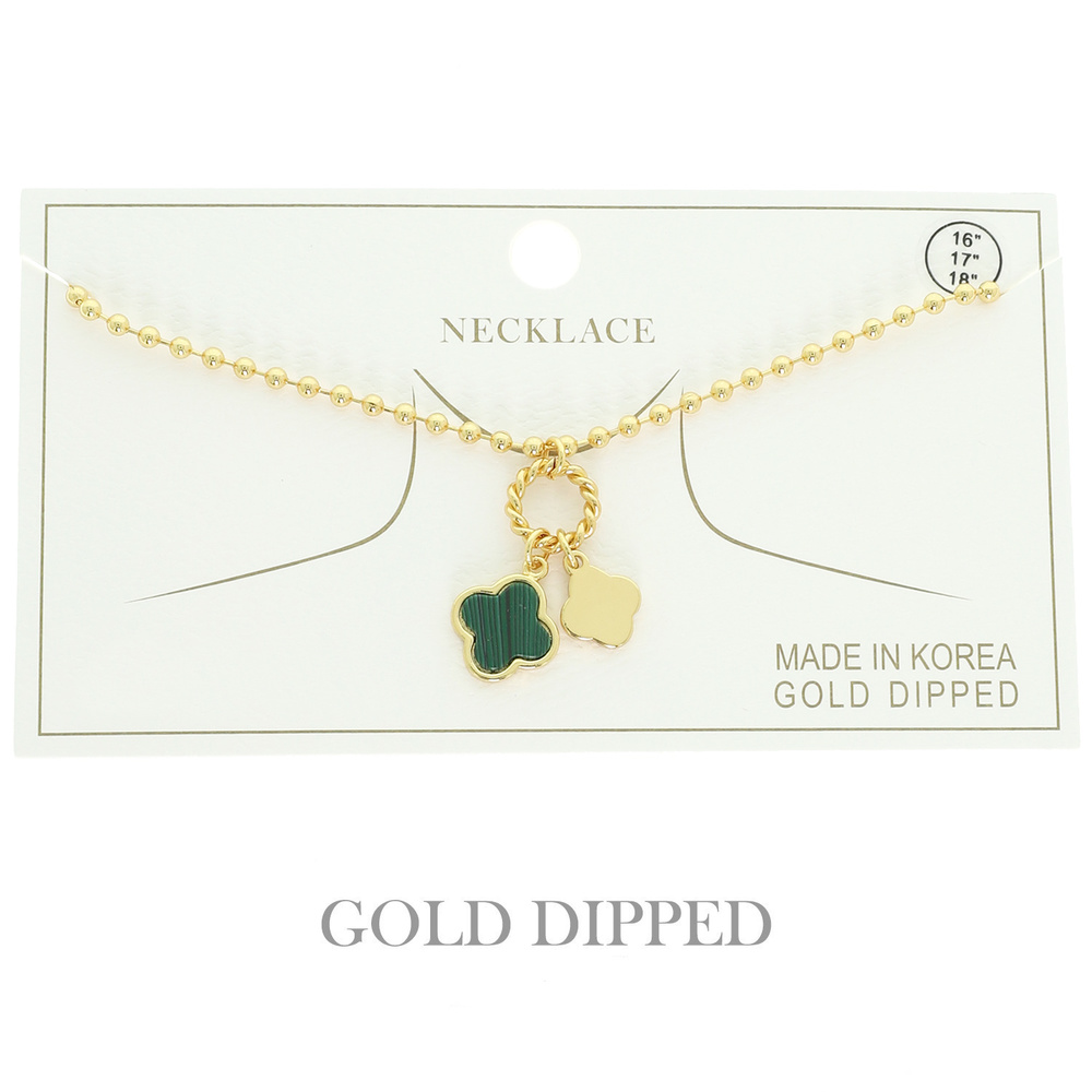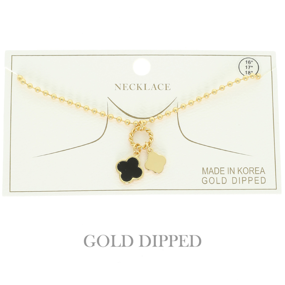 ENAMEL INLAY DUAL QUATREFOIL CLOVER PENDANT BALL CHAIN NECKLACE