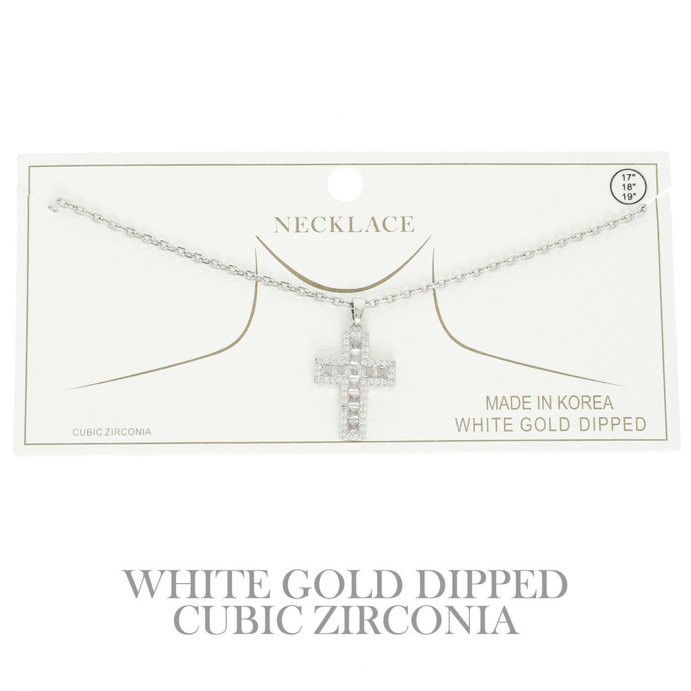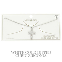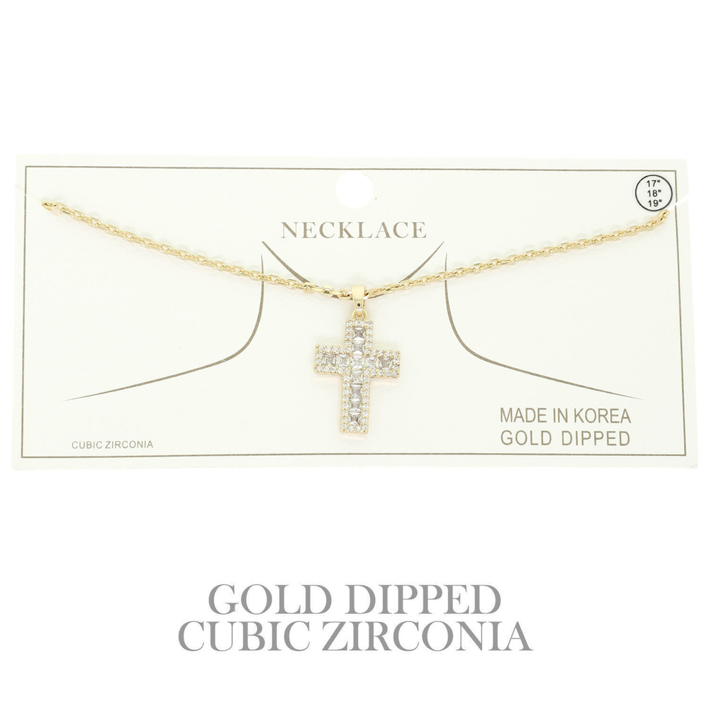 CUBIC ZIRCONIA EMBELLISHED CROSS PENDANT NECKLACE IN YELLOW GOLD PLATING