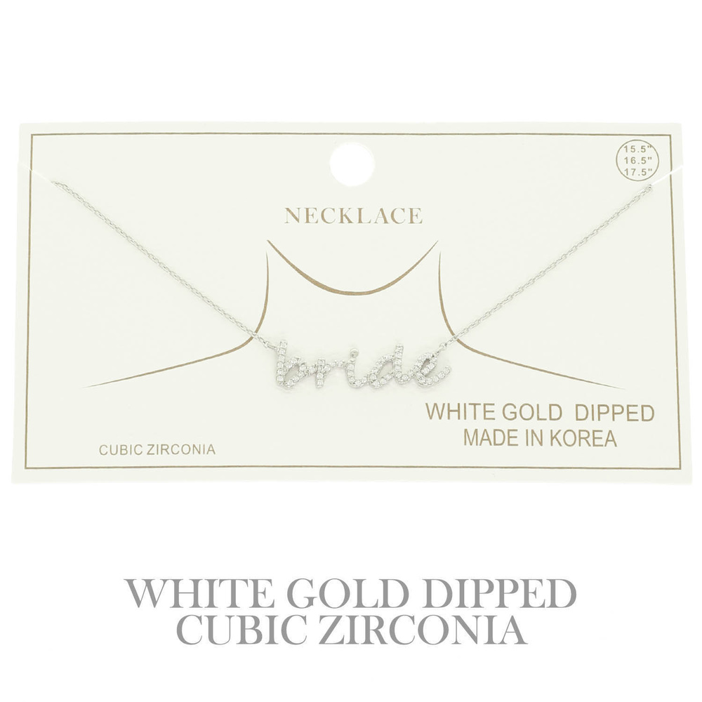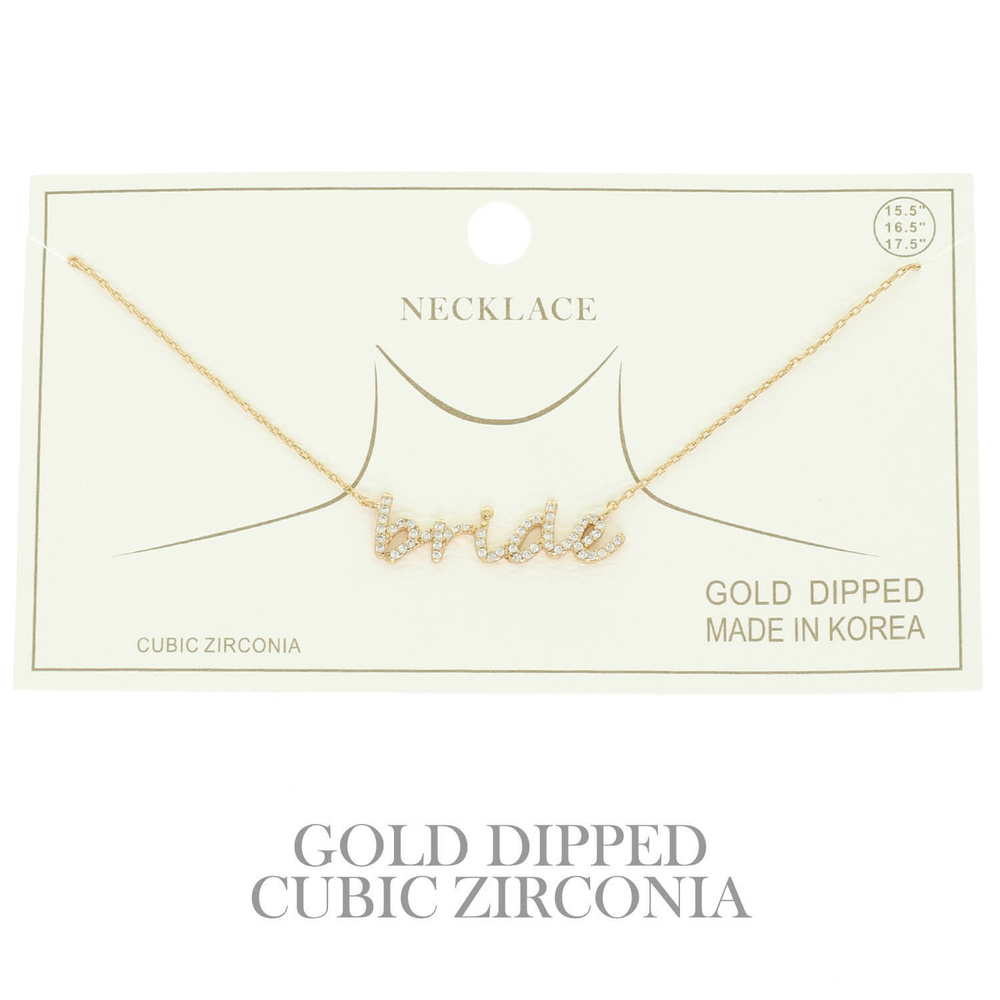 CUBIC ZIRCONIA PAVE "BRIDE" PENDANT CHAIN NECKLACE IN YELLOW GOLD PLATING