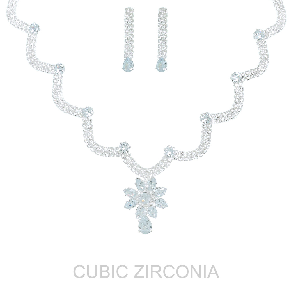 Cubic Zirconia Scallop Curve Floral Necklace Set