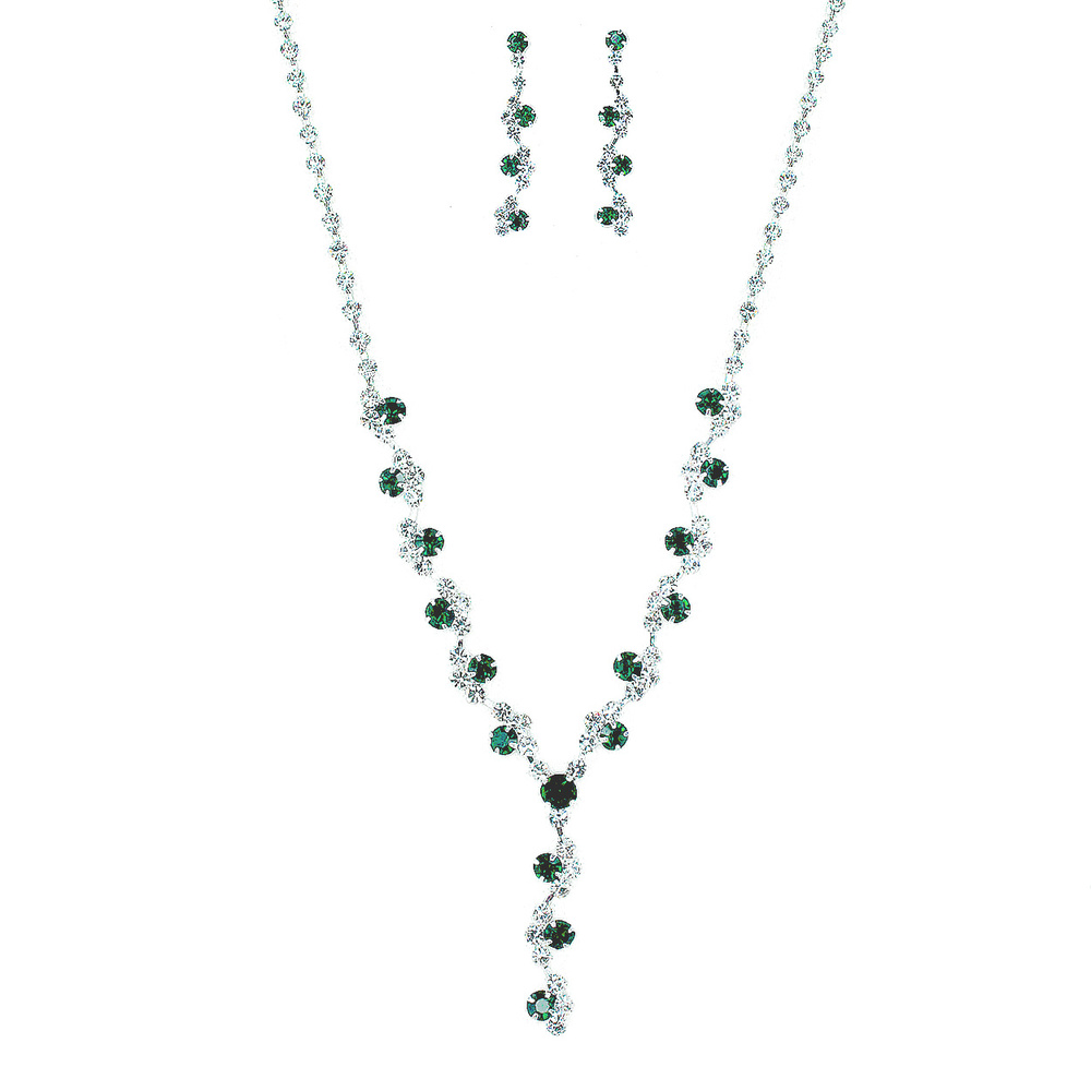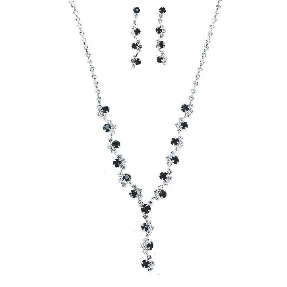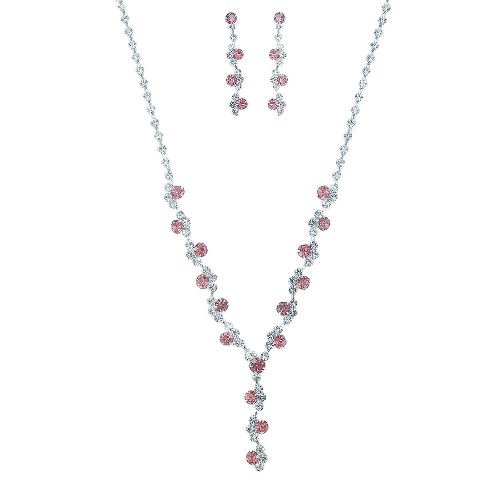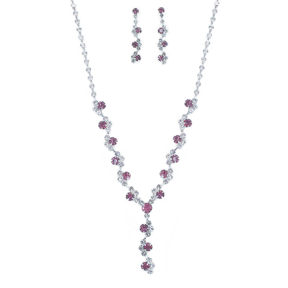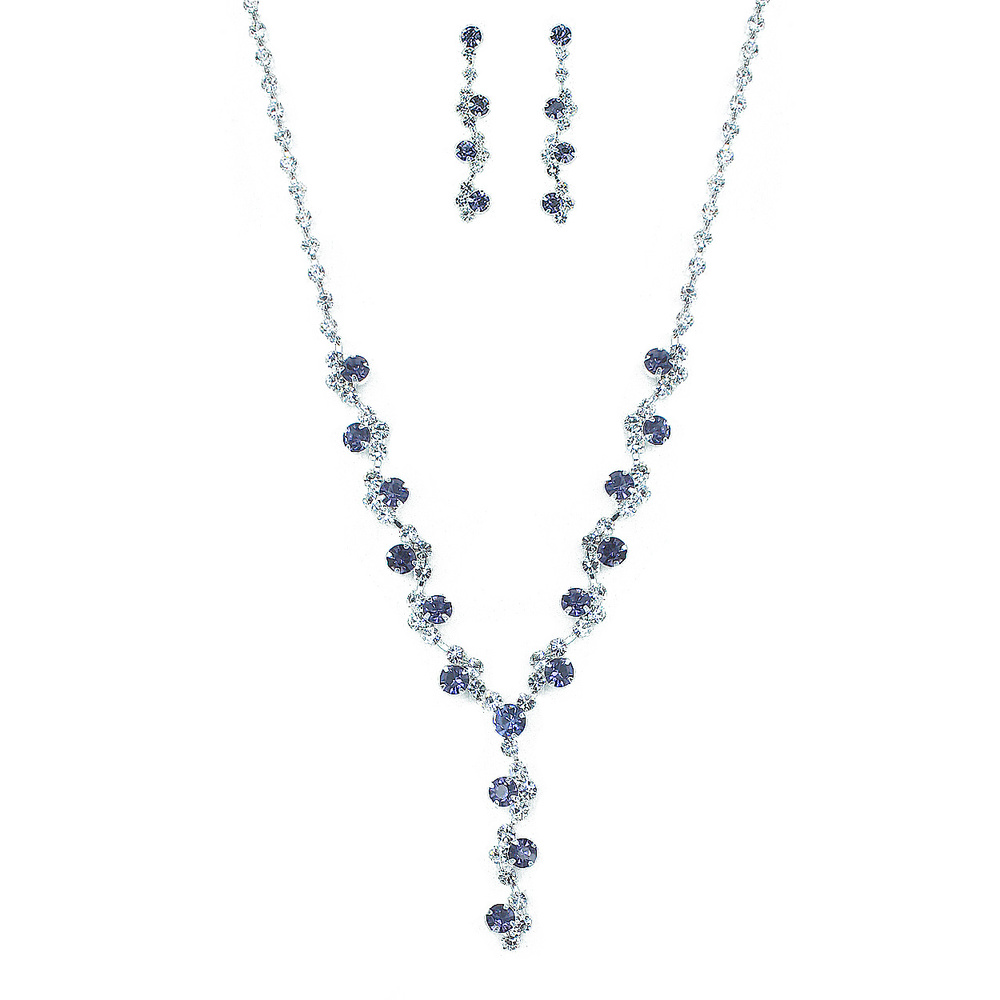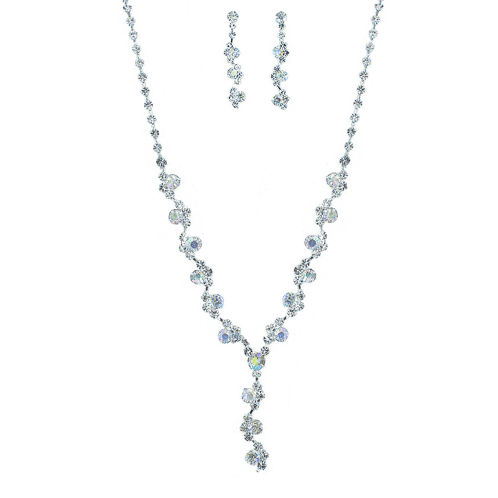 ROUND CUT CRYSTAL RHINESTONE TENNIS Y-SHAPE NECKLACE EARRING SET