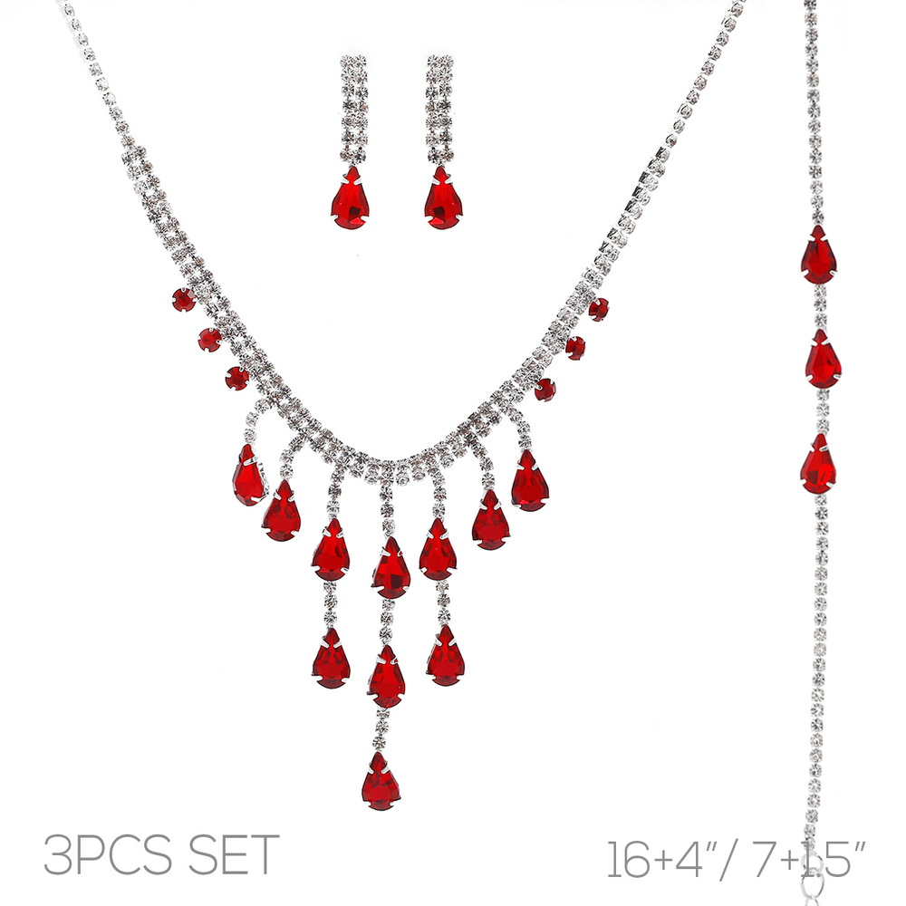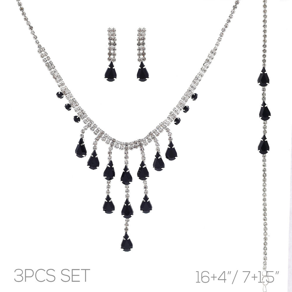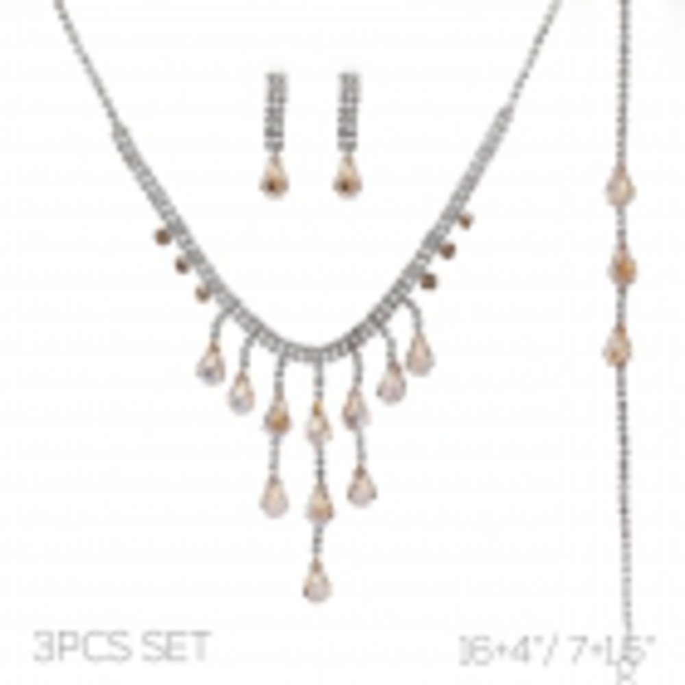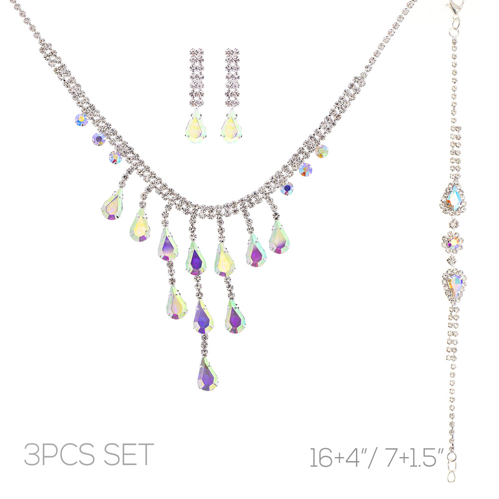 3pc Cascading Crystal Tassel Necklace Set