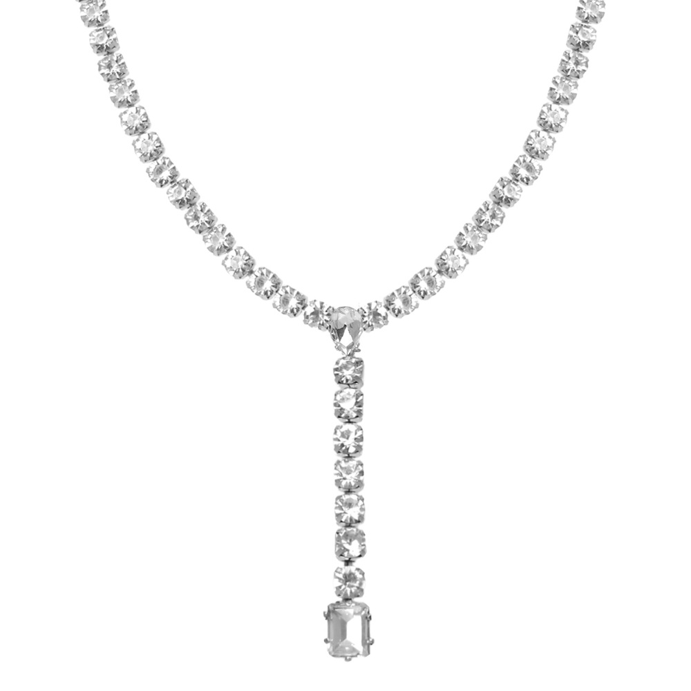 Y-SHAPE CRYSTAL LARIAT CHAIN NECKLACE IN SILVER-TONE METAL