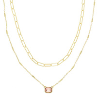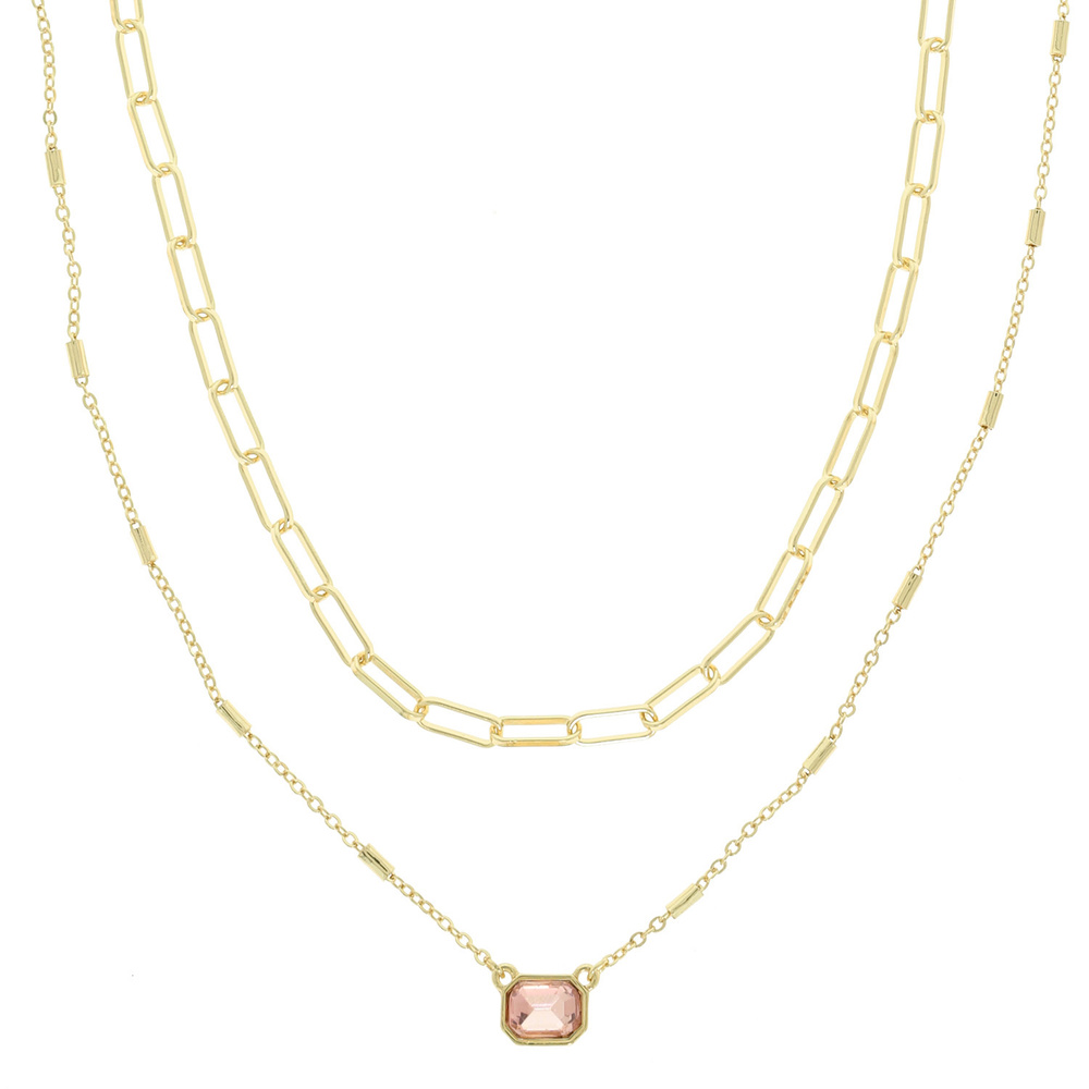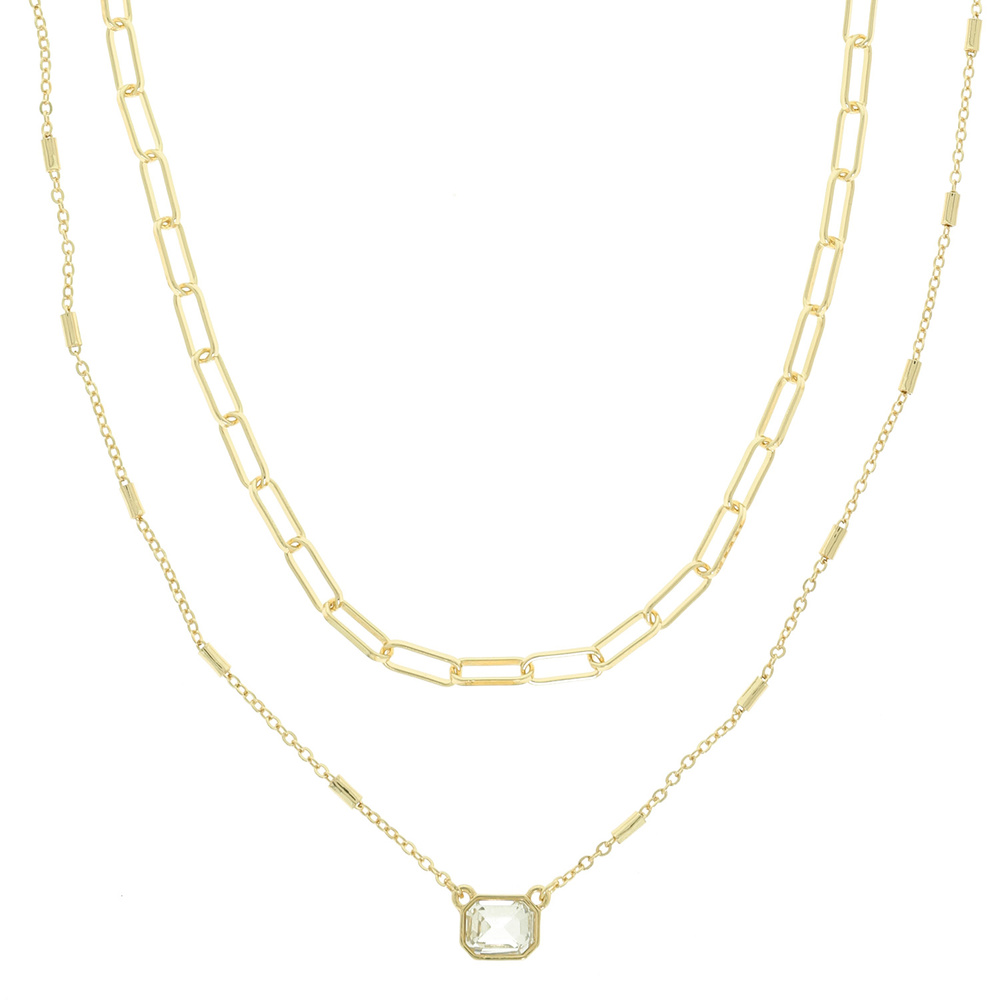 DUAL STRAND EMERALD CUT CRYSTAL PENDANT CHAIN NECKLACE IN GOLD-TONE METAL