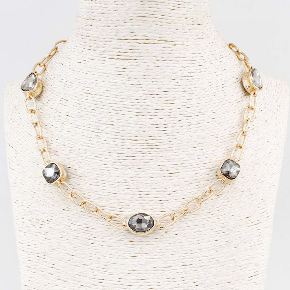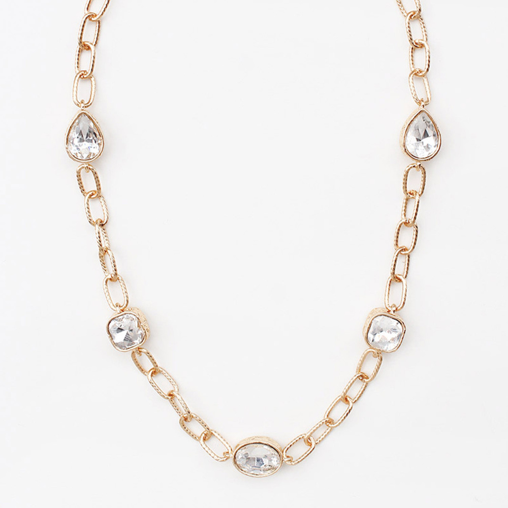 MULTI CUT CRYSTAL CHAIN NECKLACE IN GOLD TONE METAL