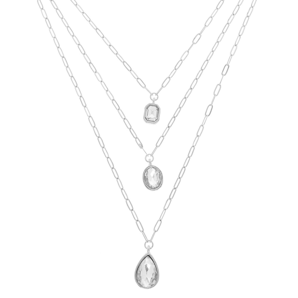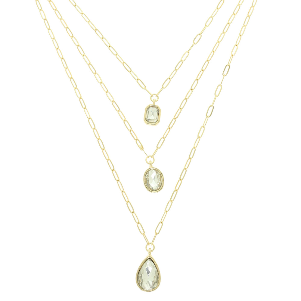 MULTI LAYER FACETED CRYSTAL CHAIN NECKLACE IN GOLD TONE METAL