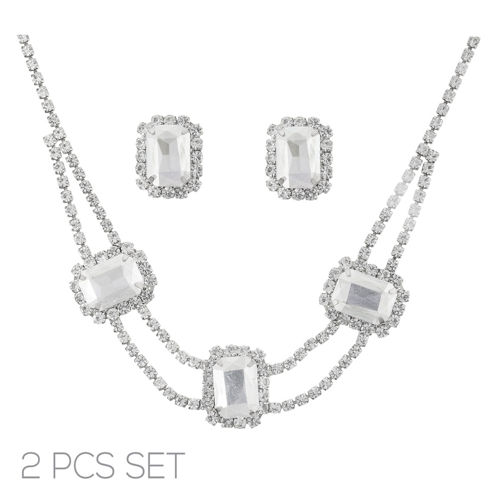 RHINESTONE CRYSTAL NECKLACE AND EARRING SET