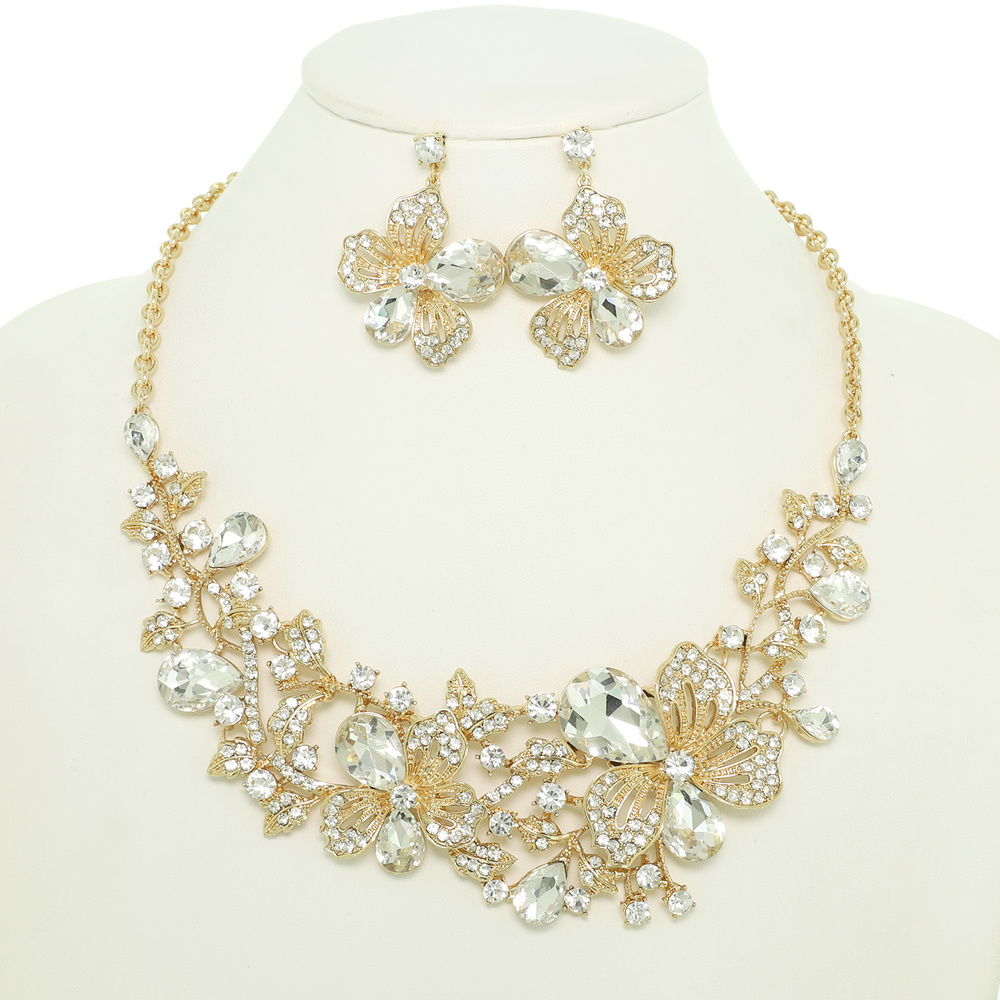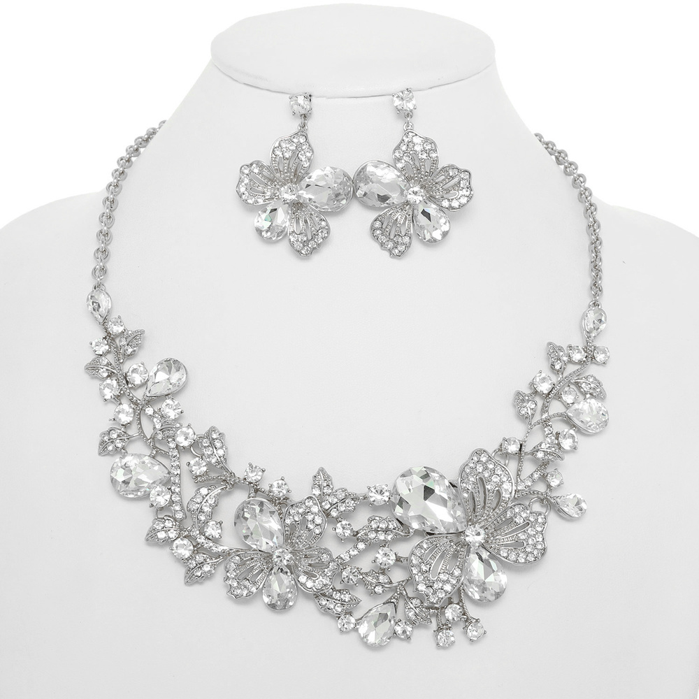 FLORAL CRYSTAL EMBELLISHED FESTOON STATEMENT NECKLACE EARRING SET