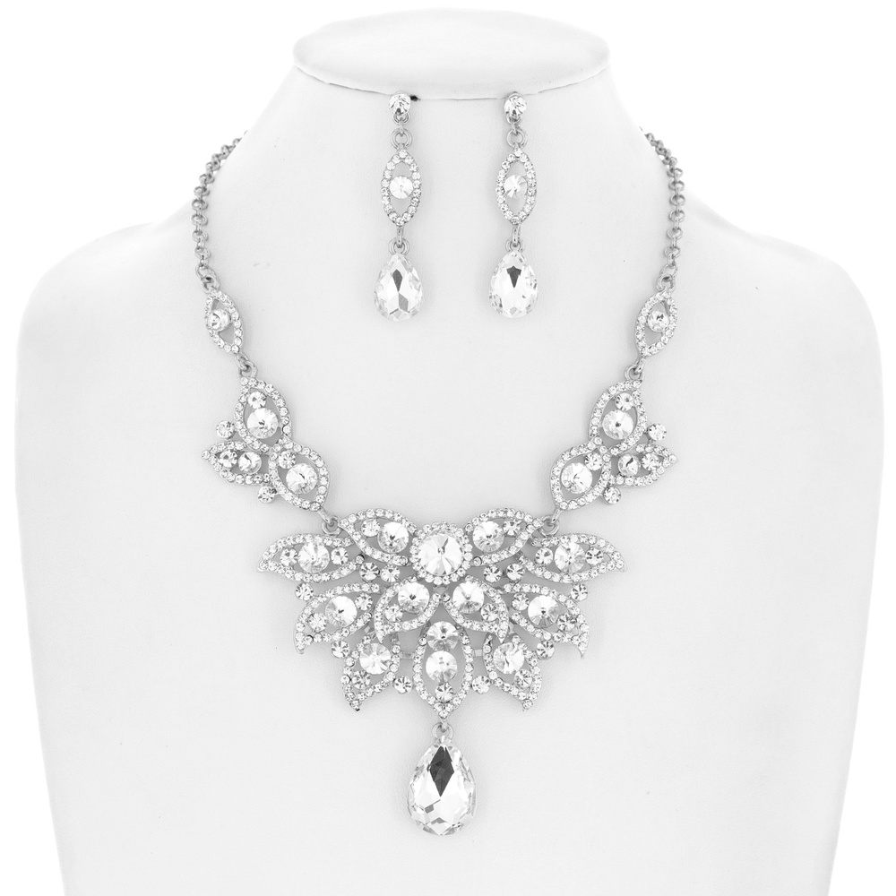 Bridal Crystal Teardrop Bib Necklace Earrings Set